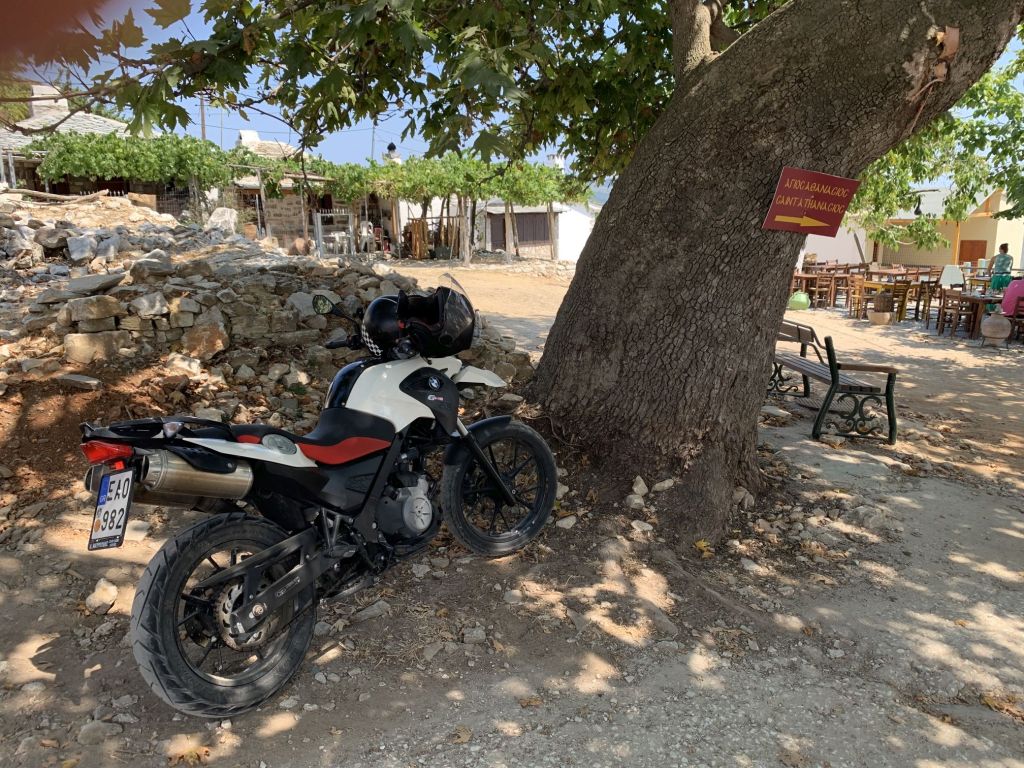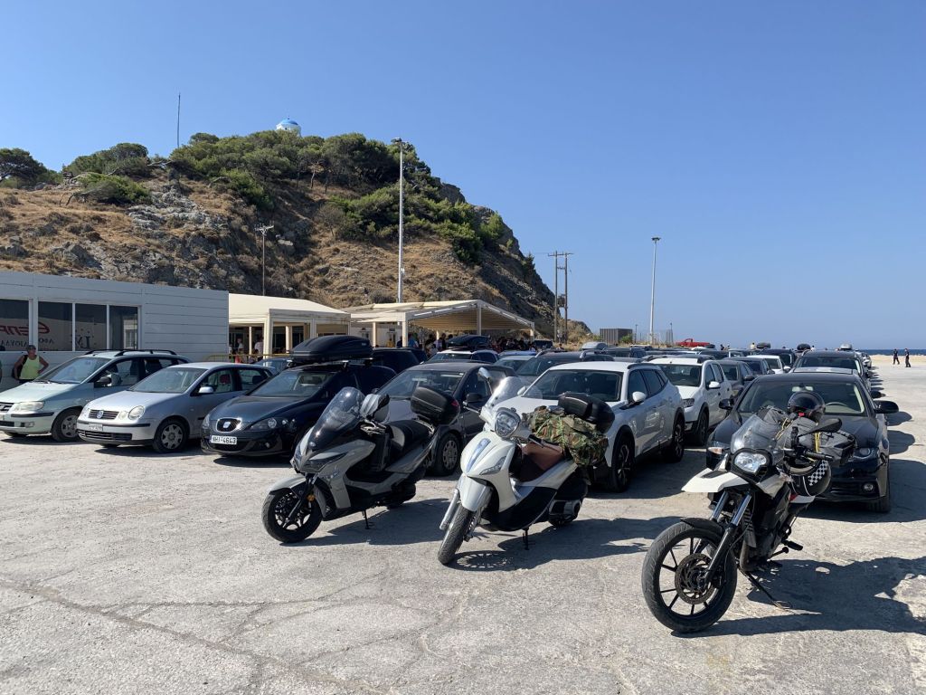 Auch nachdem wir in Prinos von der Fähre rollen, sehen wir zu das Weite zu suchen. Rund um die Anleger sind oft nur Billigkneipen, es herrscht immer aufgeregter Trubel. Meist fahren wir ein paar hundert Meter weg, stoppen im Schatten und sortieren uns neu.