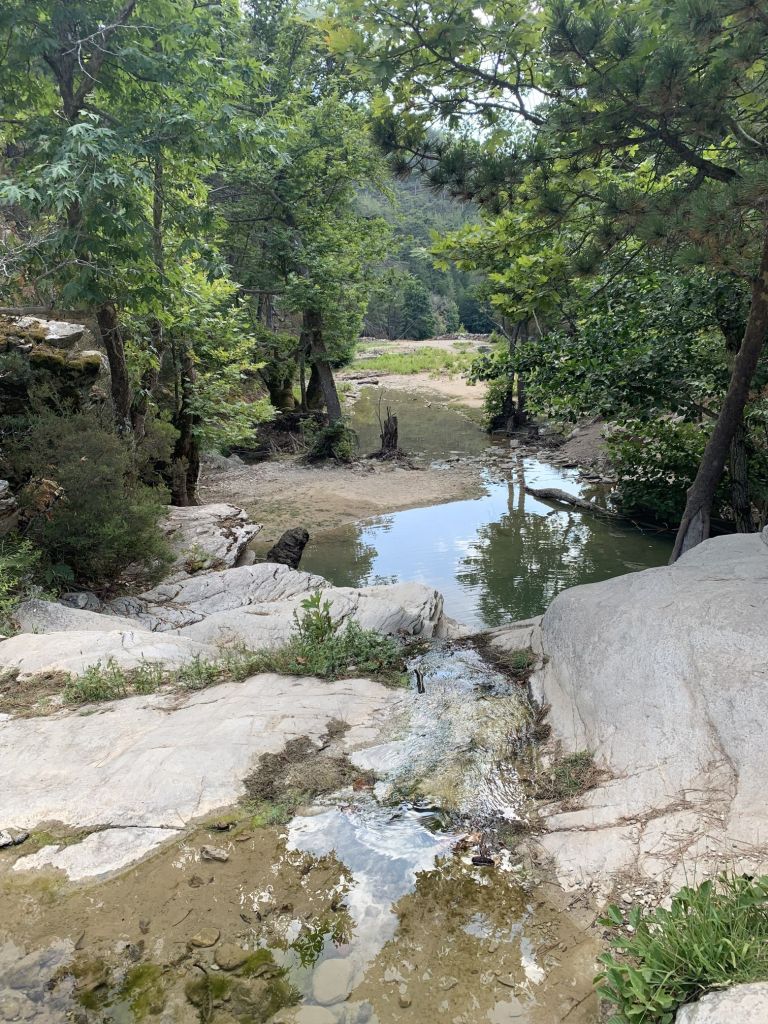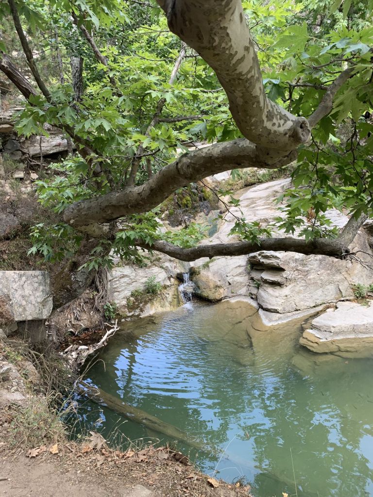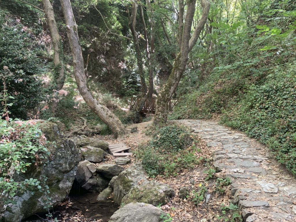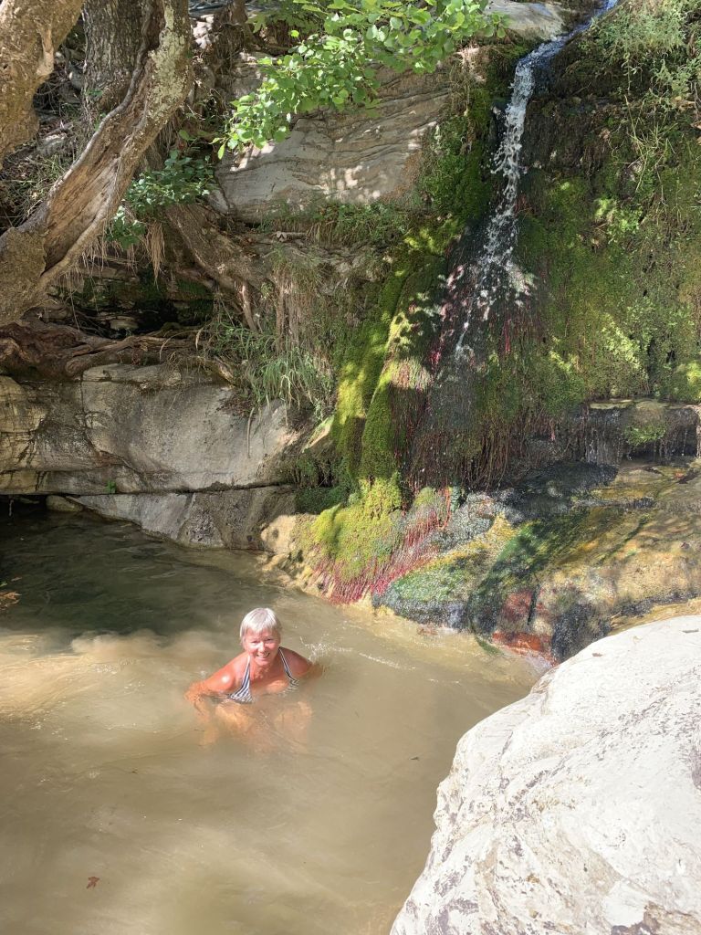 Ich wollte mich von meiner besten Seite zeigen und habe Sibylle einen Spaziergang, fast eine kleine Wanderung, versprochen. Es gibt hinter Kavala einen Track der „Waterway Trail“ heißt. Man spricht von einer Quelle und einer Wanderung entlang einem Bachlauf im Schatten grüner Laubbäume.