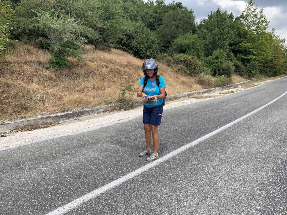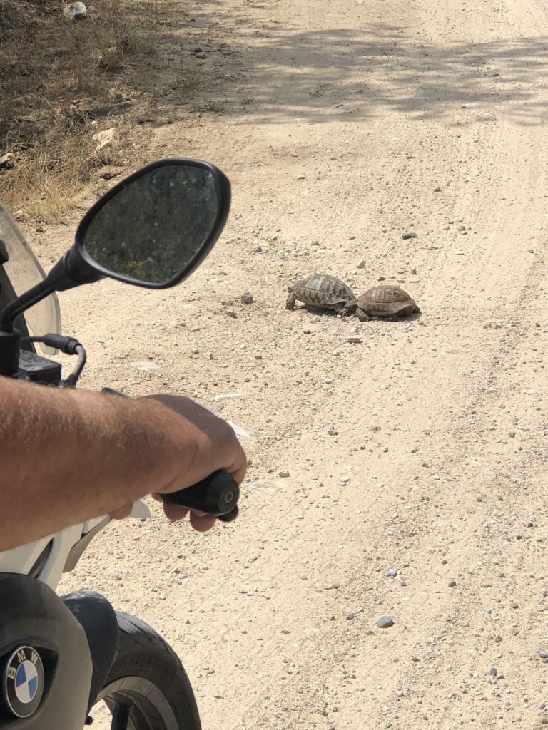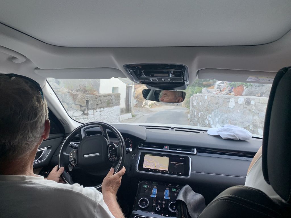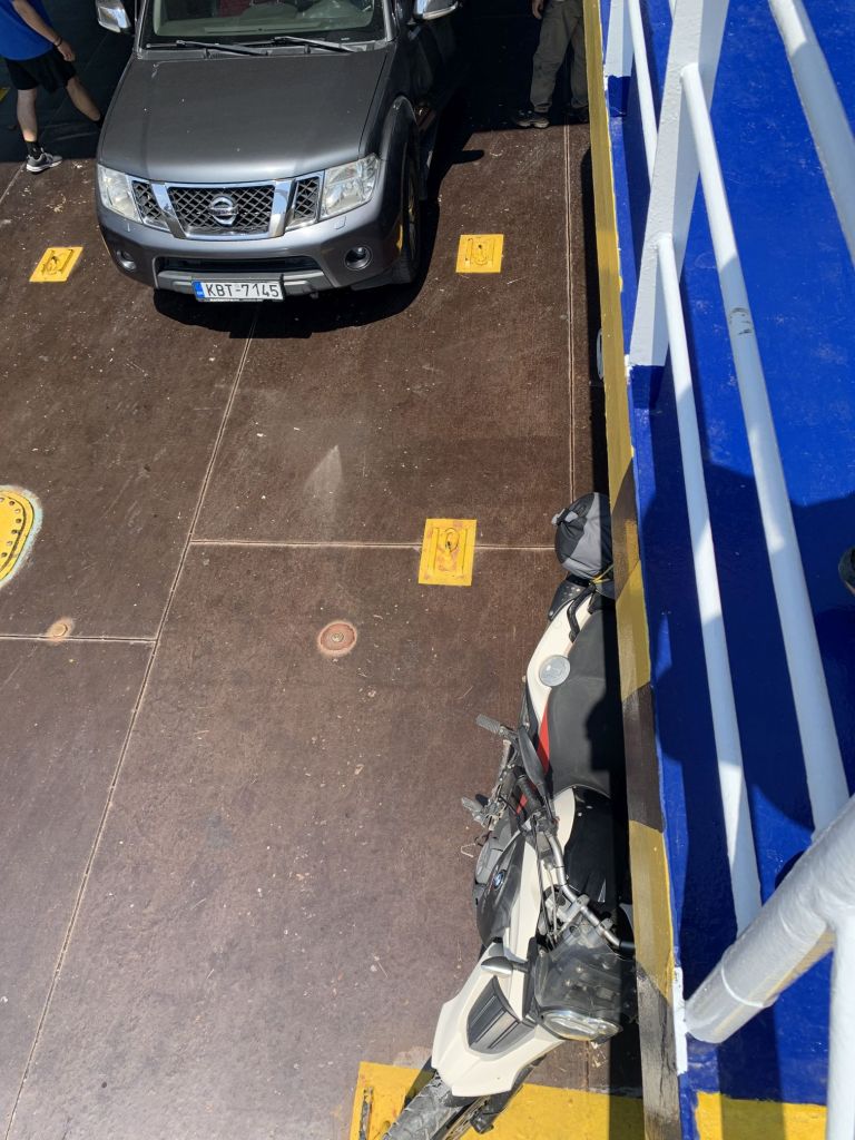 Bevor hier Ermahnungen kommen – wir sind das Risiko auf Sicherheitskleidung zu verzichten, bewusst eingegangen. Wir haben keine und fahren auf Leros immer defensiv, vorsichtig und langsam – dies wollten wir auch auf der langen Reise so fortsetzen und haben daher eine Art „Gleichsetzungsverfahren“ angewendet. Wir machen das wie immer – das Restrisiko müssen wir eben tragen!
