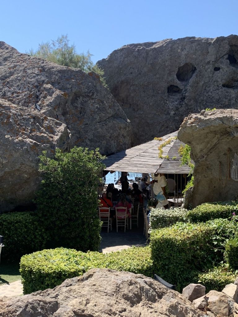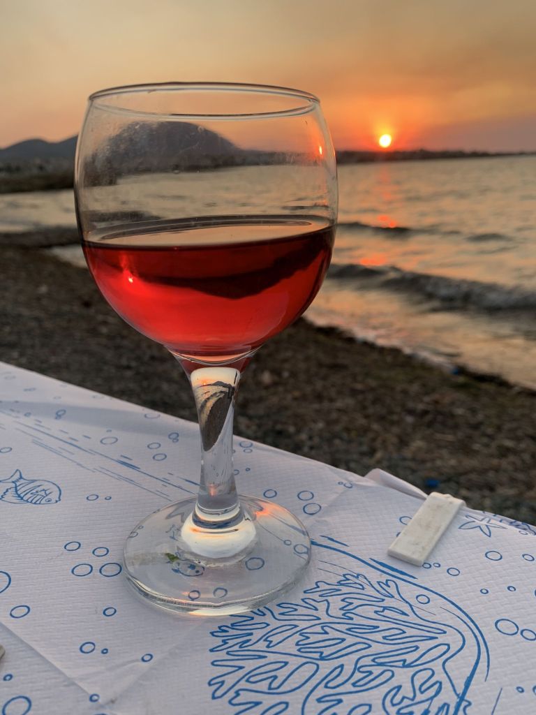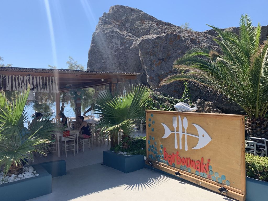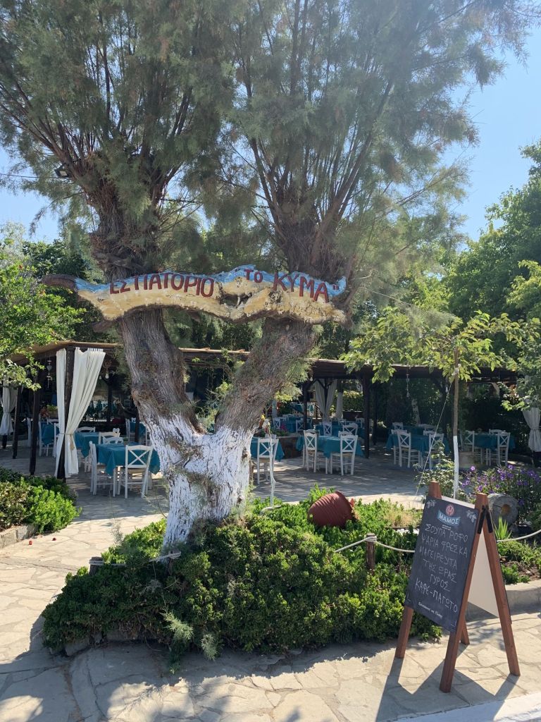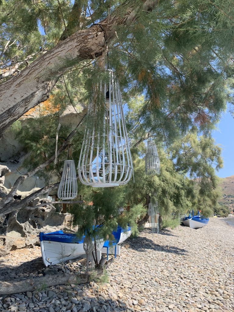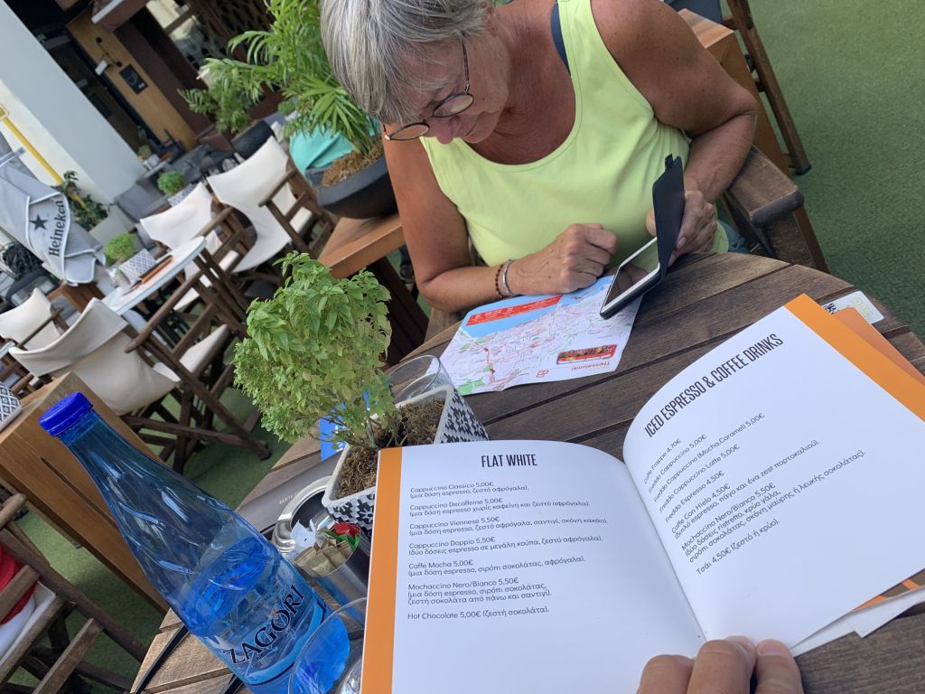 Eleni schickte uns zum nahegelegenen Strand und empfahl eine Taverne in der es, bei Vorlage eines Gutscheines, 10% Rabatt gab. DAS ist exakt das was ich nicht leiden kann – trotzdem gingen wir hin, wir wollten die Füße ins Wasser halten – haben wir aber nicht…