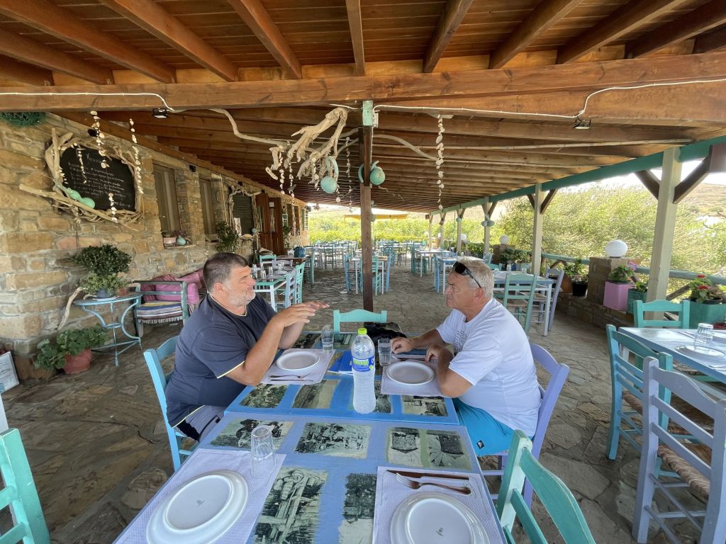 Nach einer schnellen Dusche, treffen wir uns im „Pirofani“ in Panteli und lassen den herrlichen Abend bei reichlich Meze, Ouzo und allerlei pointierten Geschichten und Anekdoten ausklingen.