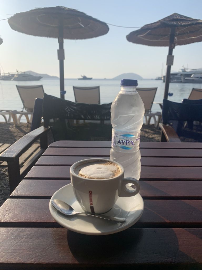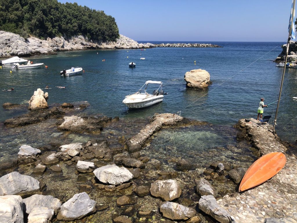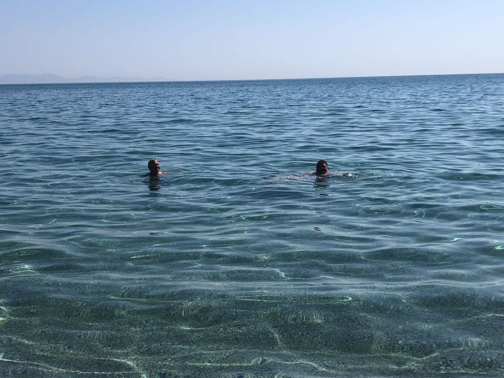 Ich schlafe im Cockpit und wache früh auf. Ich lasse Sibylle noch ein bisschen schlummern. Mir fällt ein, dass ich lange nicht mehr am frühen Morgen in Panteli beim Baden war – heute war der Tag…