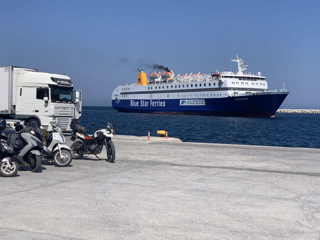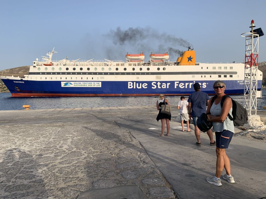 Egal, wir finden uns pünktlich am Port in Lakki ein und warten auf die Ankunft der „BLUESTAR DIAGORAS“.
