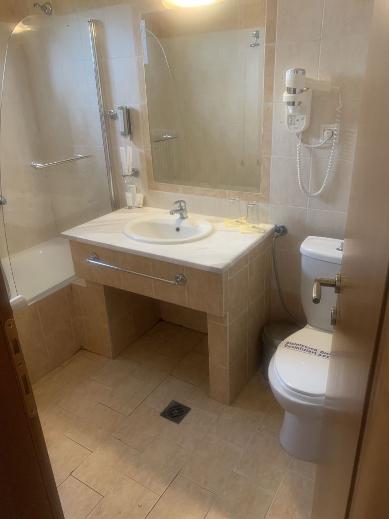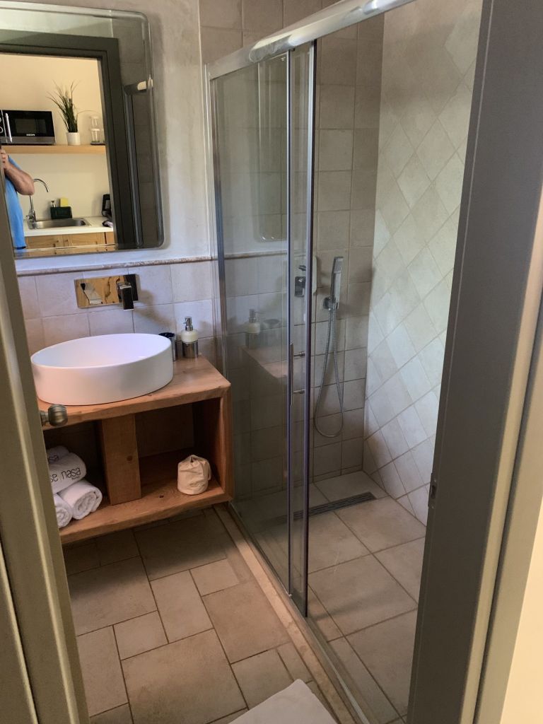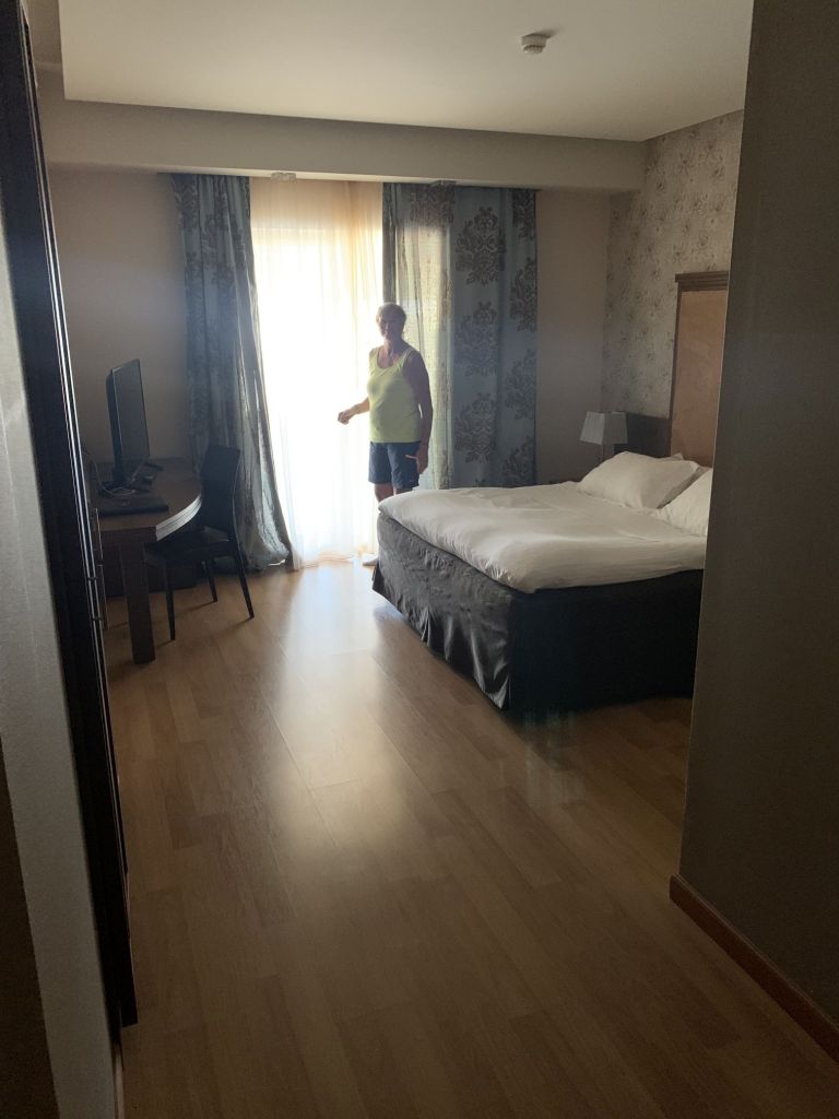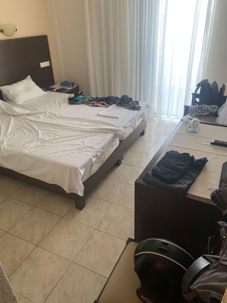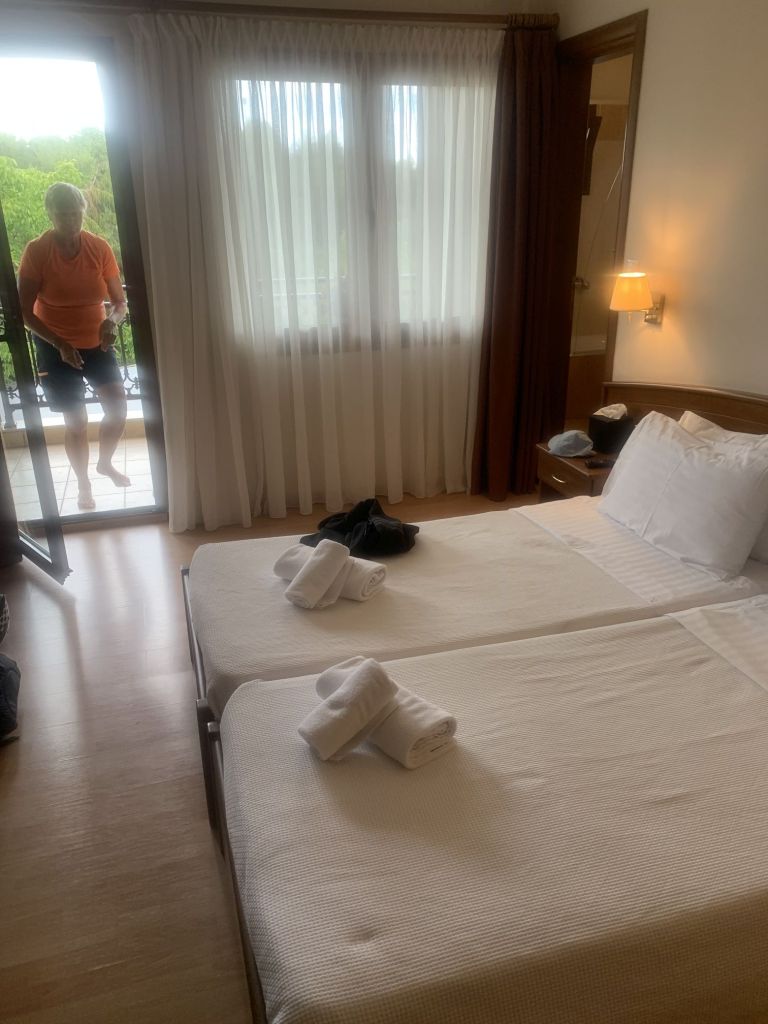 Wir konzentrieren uns auf das Zimmer, der erste Eindruck – einfach aber sauber, geräumig mit Terrasse – über die kleinen Mängel sehen wir entspannt hinweg.