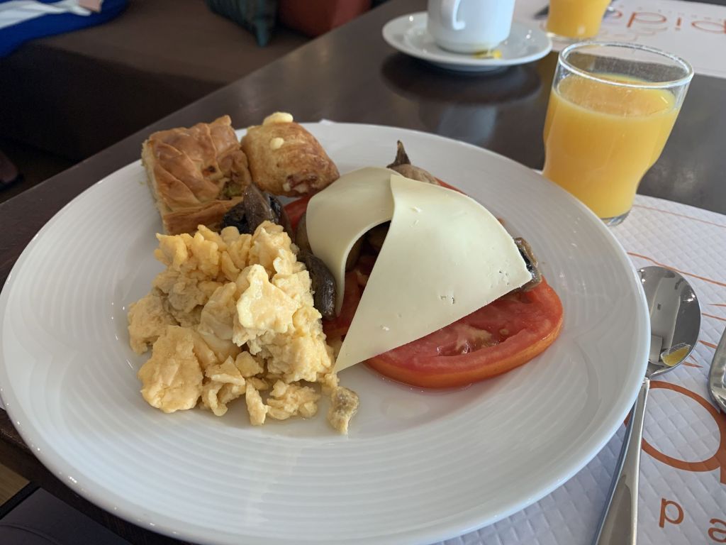 Dies zog sich bis zum nächsten Morgen, entsprechend gerädert waren wir. Da hilft nur ein Kaffee und ein kleines Frühstück als Belastungsprobe (die obligatorisch servierten Chips habe ich weggelassen 😉 )!