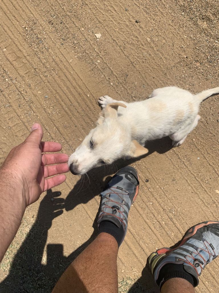 So weit, so gut – wir fahren also zum Ausgangspunkt des Trails und starten den Marsch. Sogleich bekommen wir bettelnde Begleitung!