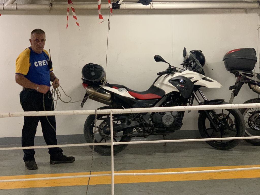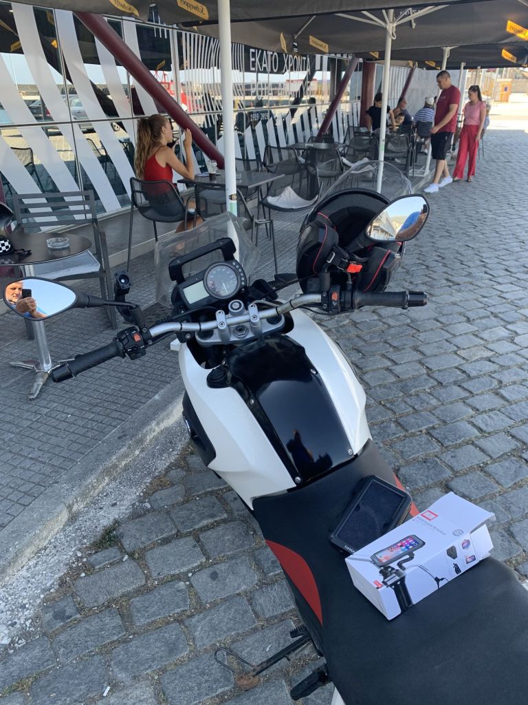 Kurz bevor wir zum Fährhafen fahren, schau´ ich noch rasch bei „Mr. Phone“ rein. Die Kette verkauft Handyzubehör aller Art. Ich kaufe mir ein neues Schutzglas für mein altes iPhone und zudem noch eine Halterung für selbiges, um es am Lenker der GS zu befestigen.