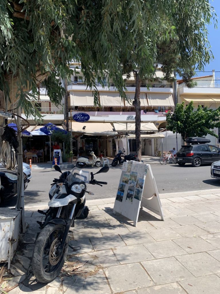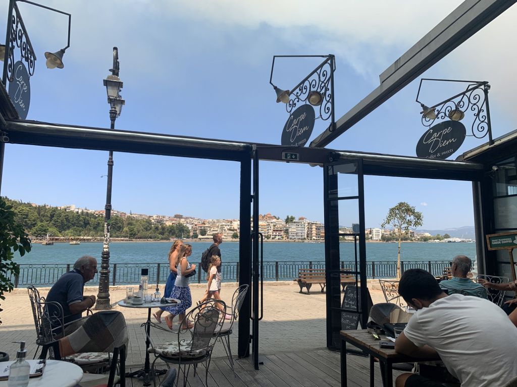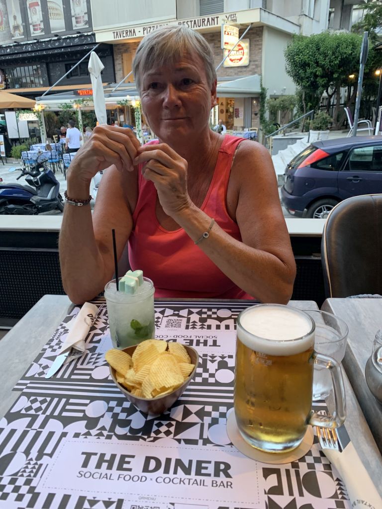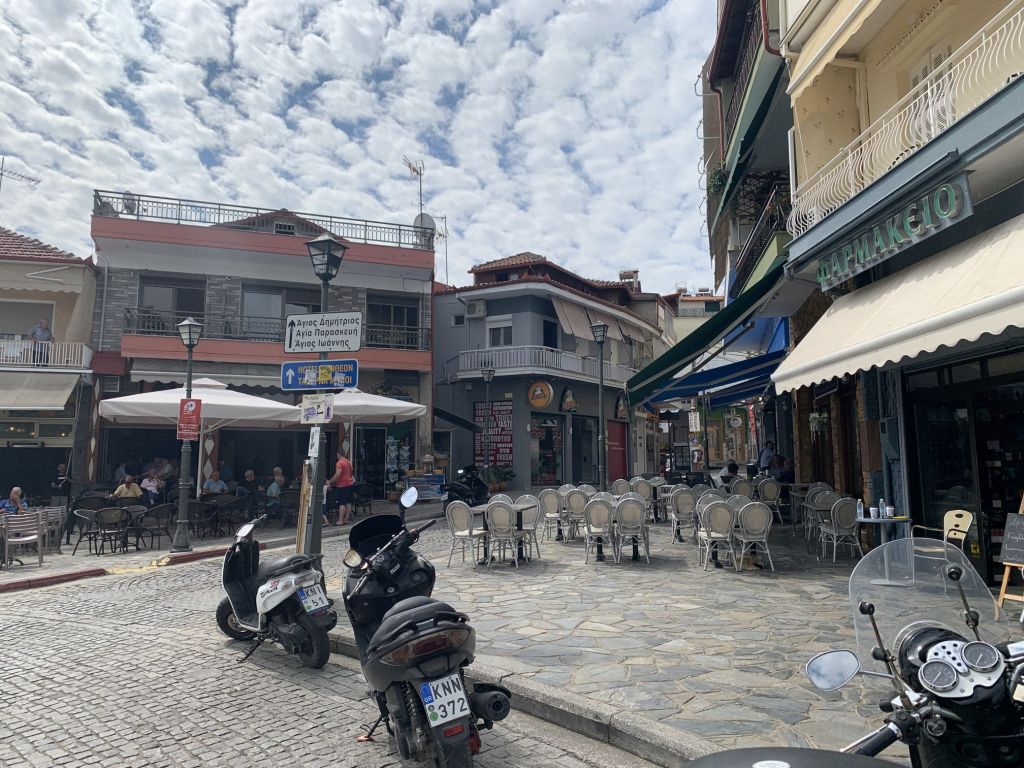 Nach unserer Rückkehr nach Kavala gab es eine erfrischende Brause an einem der unzählichen Kioske, dann war es an der Zeit zurück zur Wohnung zu fahren, uns frisch zu machen und dann den Weg ins ca. 20km entfernte Nea Peramos anzutreten.