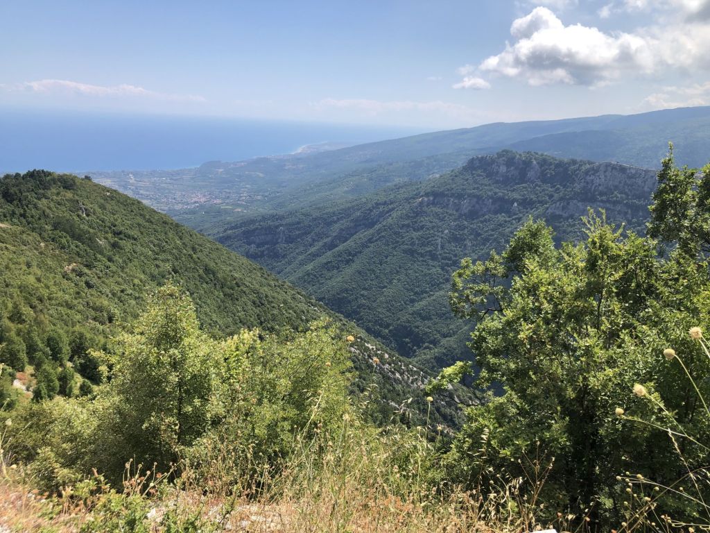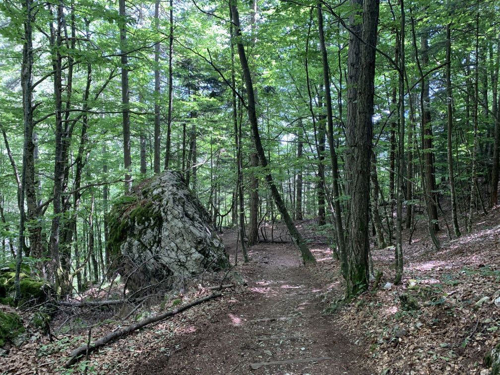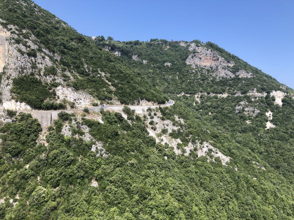 Die Fahrt war surreal! Die erste Hälfte der Strecke fahren wir, auf einer in die Landschaft eingebetteten Straße, durch grüne Wälder. Wir fahren kurvenreich bergauf und genießen das Wechselspiel von Licht und Schatten – ein Traum zum Abschluss.