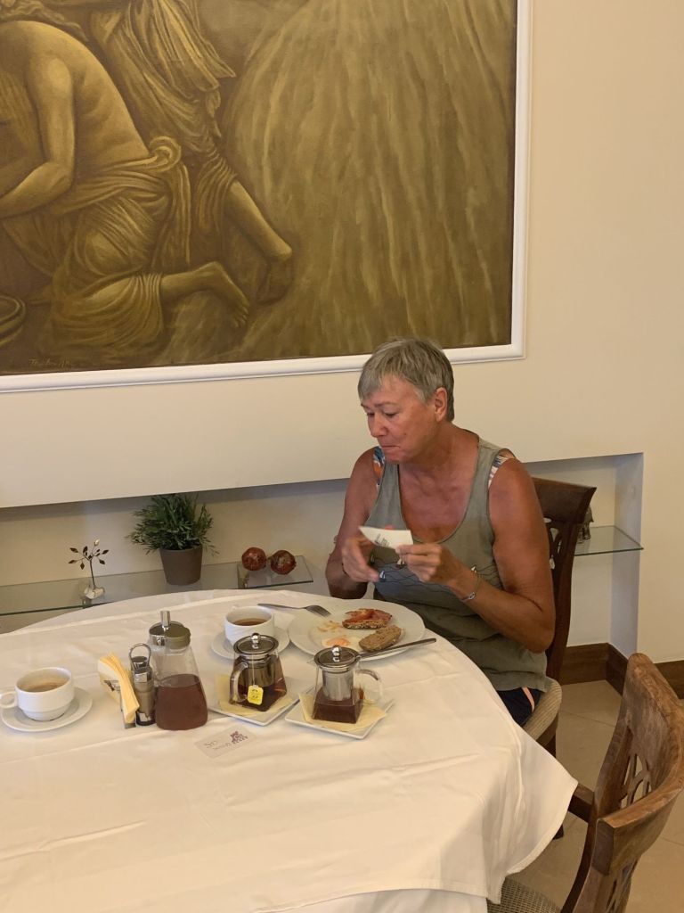 Nachdem Sibylle wach ist, freuen wir uns erst einmal gemeinsam. Dann beschließen wir, den Tag gebührend bei einem Frühstück im Marinarestaurant zu beginnen.