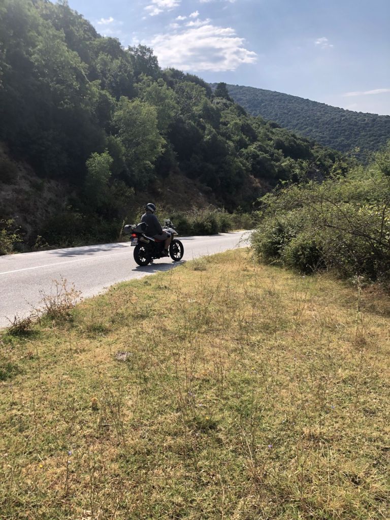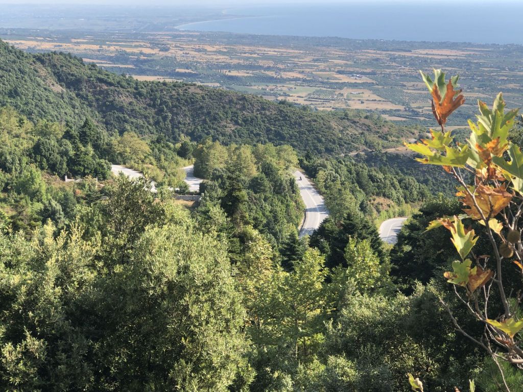 Nach Piräus fahren wir den direkten Weg. Wir nutzen, natürlich, nicht die Autobahn, sondern eine kleine, sehr feine Straße über den Bergrücken des Festlandgebietes von Attika – auch am letzten Fahrtag sammeln wir so noch ein paar Kurven.