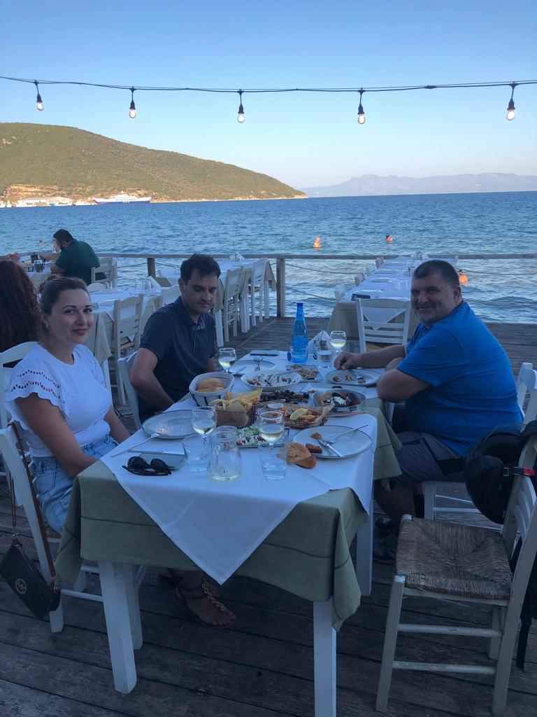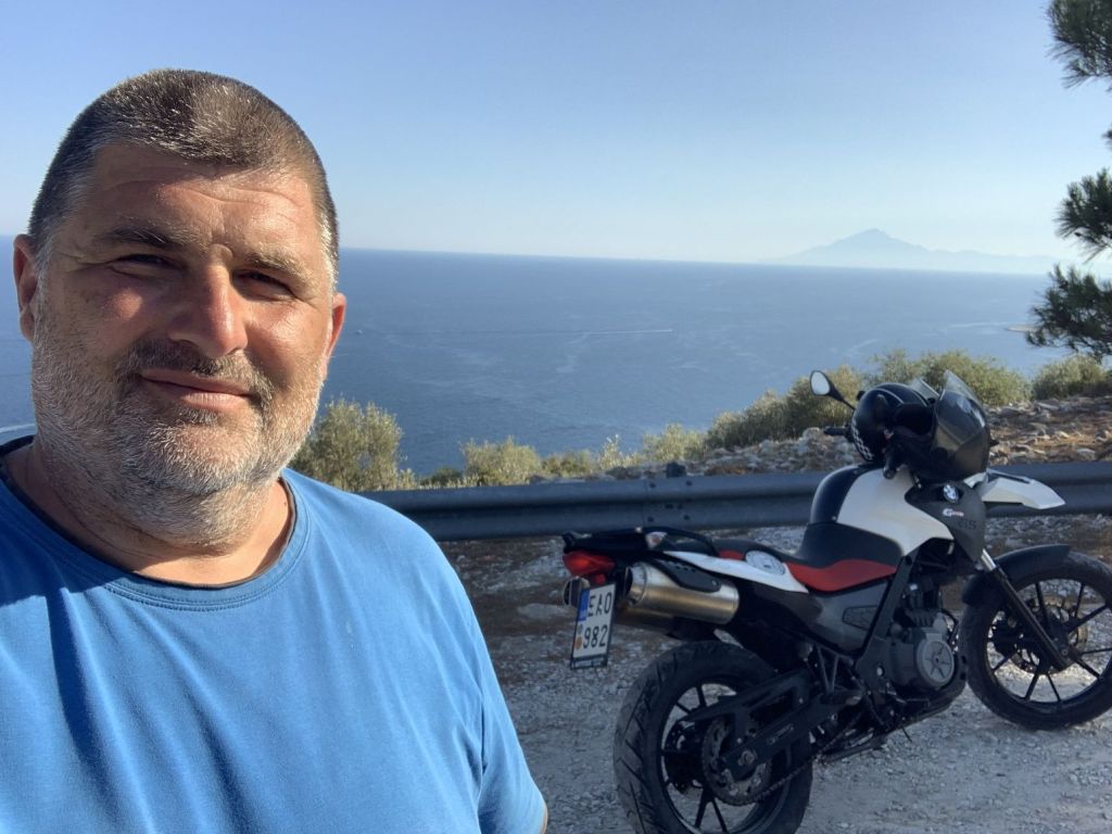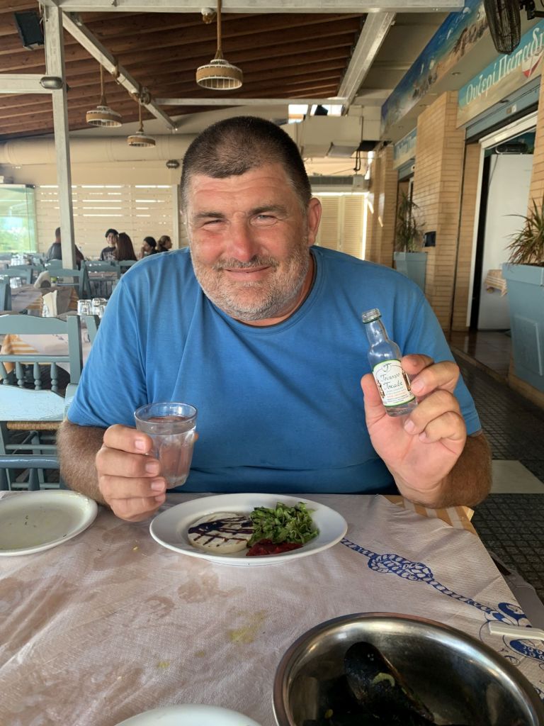 Die zweite Information ist der Grund, warum wir nun nach Nea Peramos zum Essen fahren. Sie ist wichtig für das weitere Verständnis unserer Reise. Ich habe vor einigen Jahren einem Kunden der an einer Motorenschulung von mir teilgenommen hatte versprochen, dass ich ihn besuche, sollte ich jemals in die Nähe seines Heimatortes kommen. Er sagte damals er wohne nahe Thessaloniki.