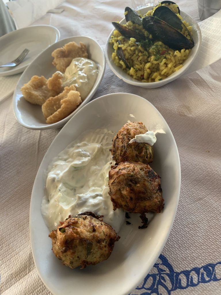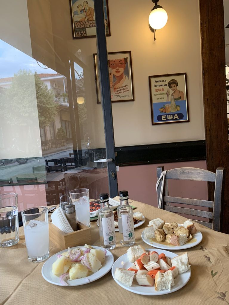 Alex kannte die Seafood Taverne sehr gut und übernahm die Bestellung – das liebe ich! Überhaupt, ich mag es sehr gerne, wenn man gewonnene Kontakte pflegt und sich erinnert. Es war Sibylle und mir eine Ehre die griechischen Freunde nahe ihrer Heimatstadt zu treffen.