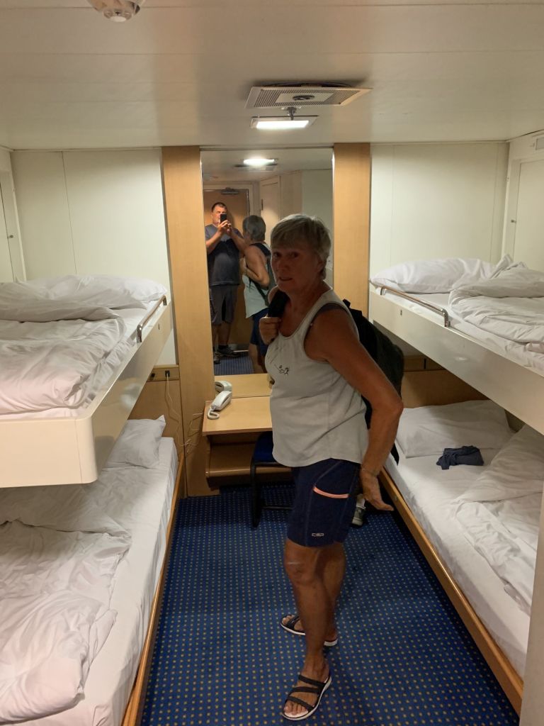 Diesmal sollte die rund 21-stündige Fahrt über Nacht gehen, wir hatten daher eine Kabine gebucht und mussten an der Rezeption einchecken. Siehe da, dort treffe ich meine Gattin, welche das Procedere schon erledigt hatte.