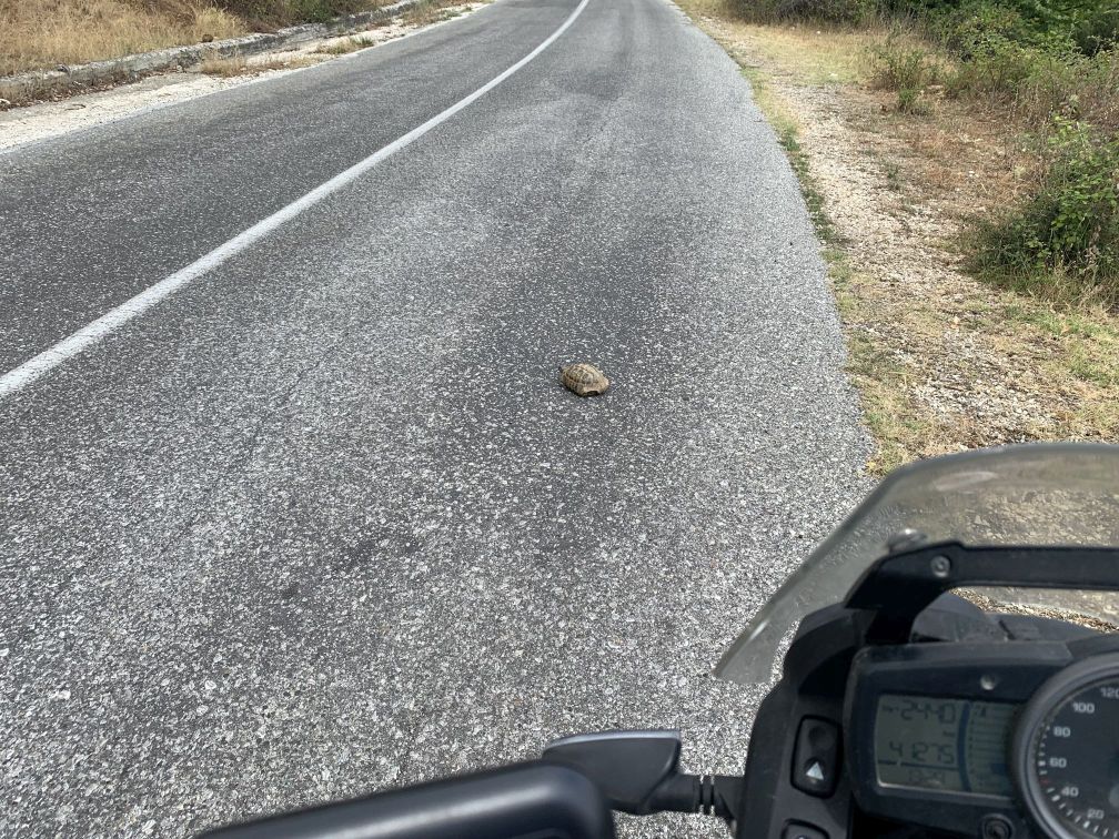Mich ficht das nicht an – ich hänge weiter meinen Gedanken nach. Störche, pah, haben wir stetig auf unserer Fahrt gesehen! Dazu etliche streundende Katzen und Hunde, wilde Schildkröten, Pferde und Wasserbüffel. Zu diesen Eindrücken addiert sich die Sichtung einer Schlange und die Tatsache, dass wir vier Wochen in unbeschreiblich schönen Landschaften unterwegs waren.