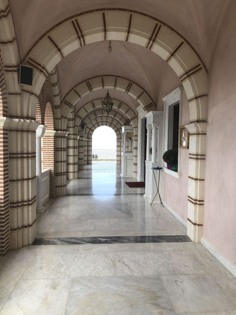 Der Besuch des Klosters war komisch. Sibylle musste sich verhüllen wie noch niemals zuvor, was sie übrigens ohne Murren und Knurren und mit großer Akzeptanz für diese Regeln tut, um dann KEINEN Einlass zur Kirche zu bekommen. Diese bleibt hier abgesperrt, man kann nur die Außenanlagen begehen.