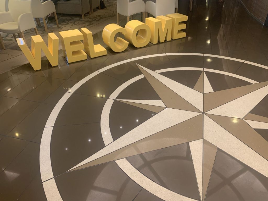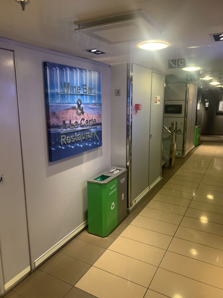 Als ich mein Mopped abgestellt habe, gehe ich in den Passagierbereich der Fähre und suche Sibylle. Wir haben da ein bewährtes System – ich finde sie daher immer im Rezeptionsbereich oder im vorderen Lounge- oder Barbereich der Schiffe.
