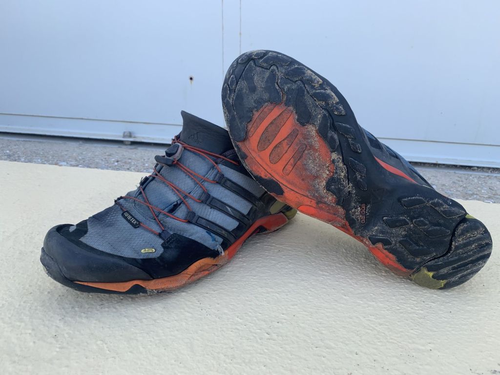 „Deine Schuhe haben ausgedient…“ höre ich sie sagen! Sie erinnert mich an eine vor Wochen leichtfertig gemachte Aussage, dass ich meine geliebten und bewährten Terrex GTX IRGENDWANN nach unserer Tour aufgeben würde. Sie meint nur lapidar – „…irgendwann ist jetzt!“