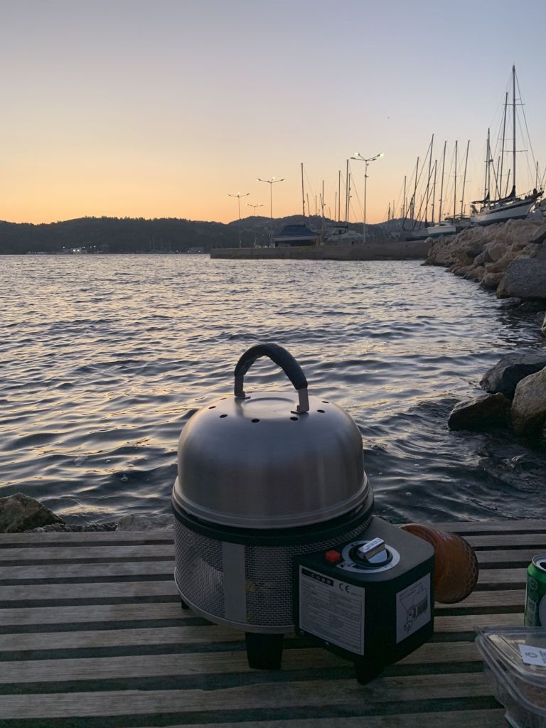Für den Abend hatten wir uns mit den Crews der JASPER und LIBERTÉ ein weiteres Mal zum BBQ verabredet. Jeder brachte was mit, ich stelle meinen Cobb auf und schon steht die Grillparty am Strand – einfacher geht es nicht!