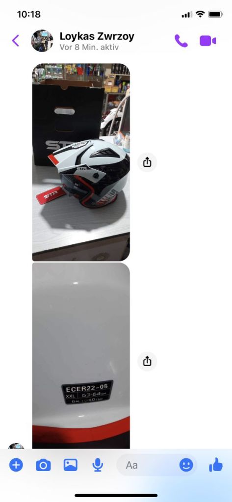 Den Ersatzhelm hatte ich bei Loukas gefunden, das Design gefällt mir – meine Größe musste er bestellen. Jetzt ist er abholbereit!