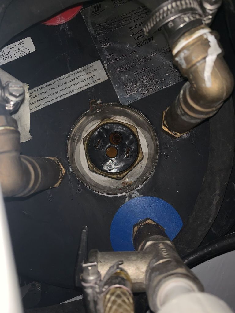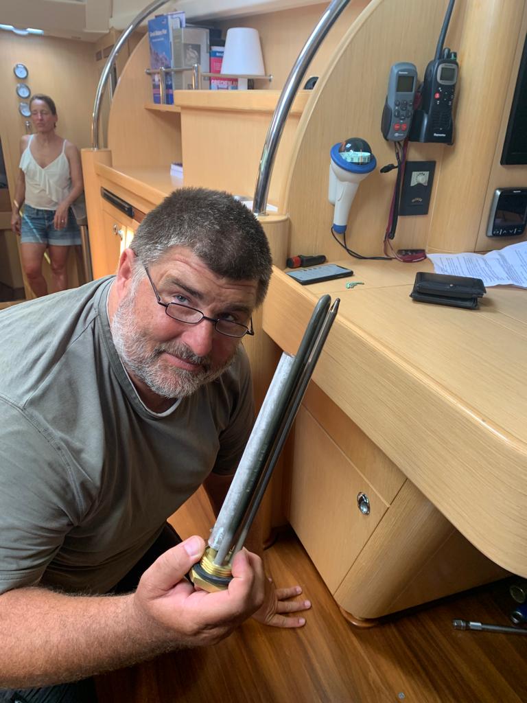 Ja, auch die ELOWYN kommt in die Jahre, auch sie hat ihre Zipperlein. Nachdem rasch klar wird, dass die Werkstatt der Marina nicht ad-hoc helfen kann, mache ich mich auf den Weg zum blauen Riesen und bahne mir durch eifriges Schrauben den Weg zum kurzschlussbehafteten Heizstab.