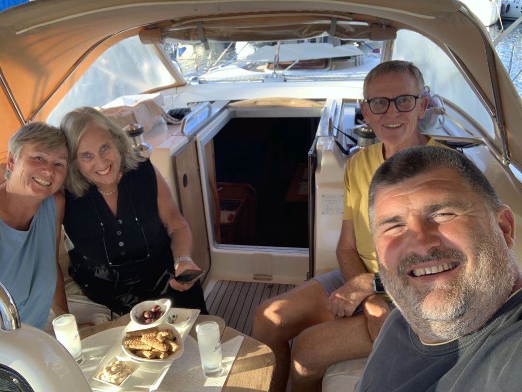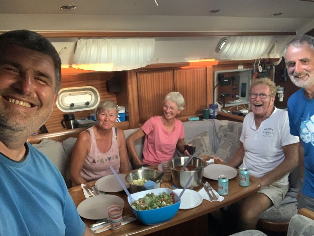 Inzwischen haben viele der Freunde und Bekannten mitbekommen, dass Sibylle am 25.09. nach Deutschland geht. Ihre Rückkehr wird sich mit der Abreise einiger Crews überschneiden, wir werden daher in dieser Phase des Monats häufiger zu Abschiedsfeiern eingeladen – so auch auf der LE CLAPOTIS von Cees und Marijke.