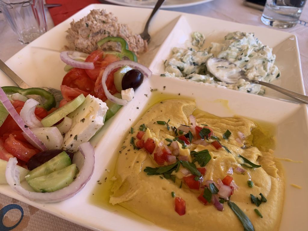 Das Essen bei Manolis war sehr gut wie immer, obwohl man auch hier ein wenig die lange Saison zu spüren bekam – der Service war nicht mehr auf Zack, aber das ficht uns nicht an, wir haben ja Zeit!