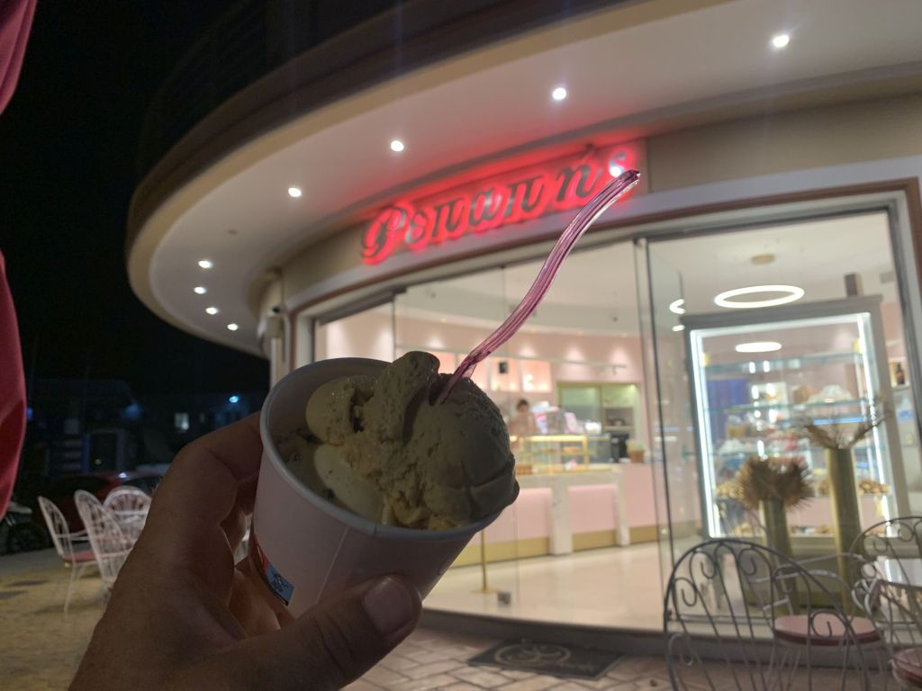 Den Abend verbringe ich weitgehend alleine. Ich muss alles erstmal sacken lassen, mich sortieren und mir einen Plan für die nächsten Tage zurechtlegen. Ich gehe, was sonst, ins „SouVLakki“ zum Abendessen und gönne mir anschließend ein Speiseeis – hier gesellt sich Hans-Peter dazu.