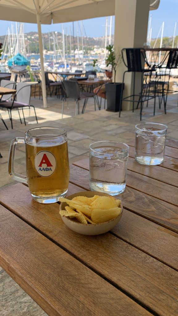 Während die Damen der Crew schon fast schliefen und nur noch zu einem kurzen Hallo in der Lage waren, haben wir die Männer der Urlaubscrew in der eingangs erwähnten Ouzeri getroffen – selbstverständlich konnten wir zu einer Einschlafhalben nicht Nein sagen…