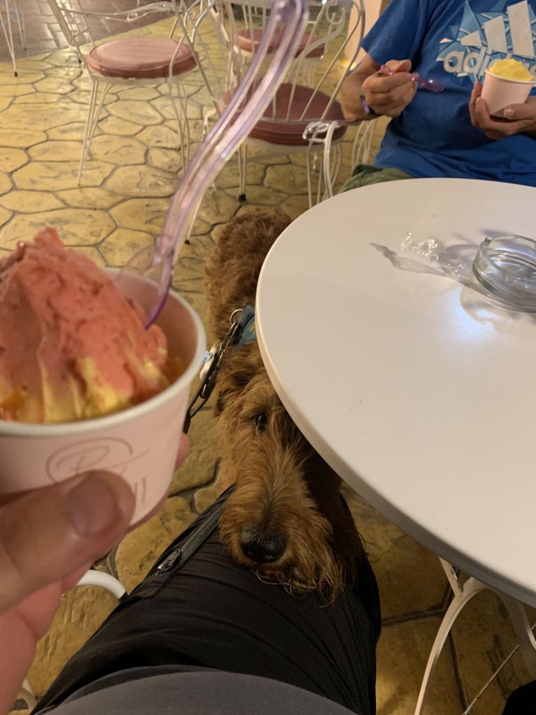 Perfekt! Auch heute klingt der Tag bei einem Eis aus – normal nicht der Rede wert, ich weiß, aber wenn es doch so ein nettes Bild vom schmachtenden Merlin gibt!