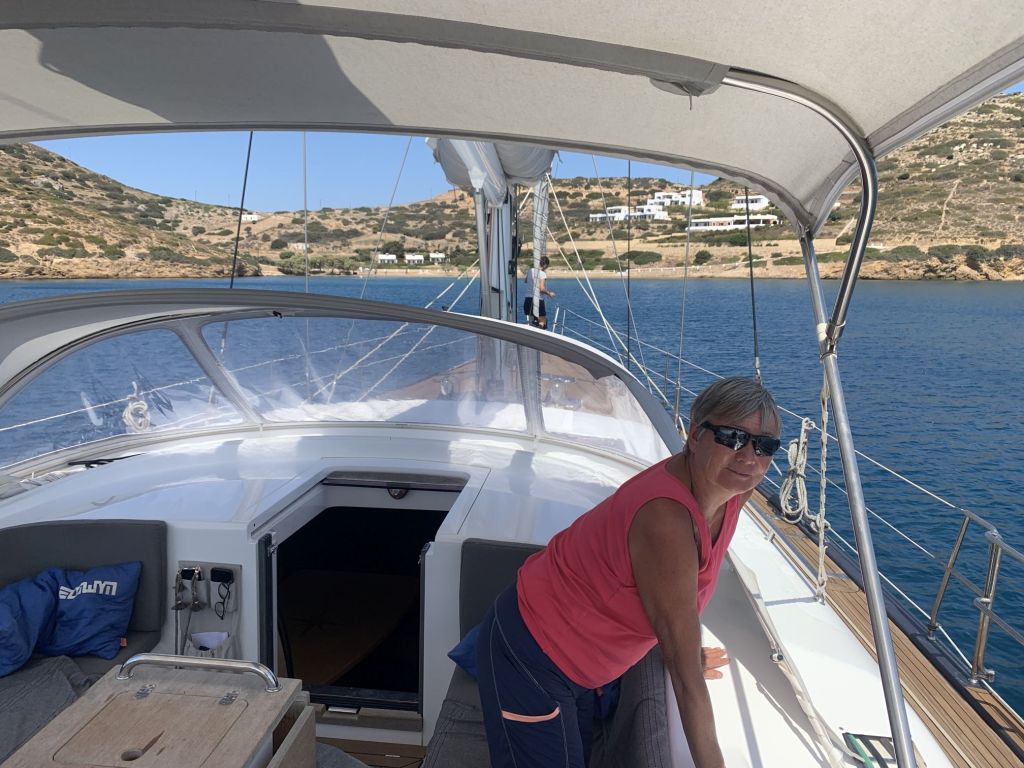 Unser zweiter Reisetag führt uns schon wieder Richtung Leros. Wieder machen wir einen langen Schlag um etwas zu segeln, Volker übergibt mir für die Manöver das Kommando über sein Baby – ich ahne bereits warum…