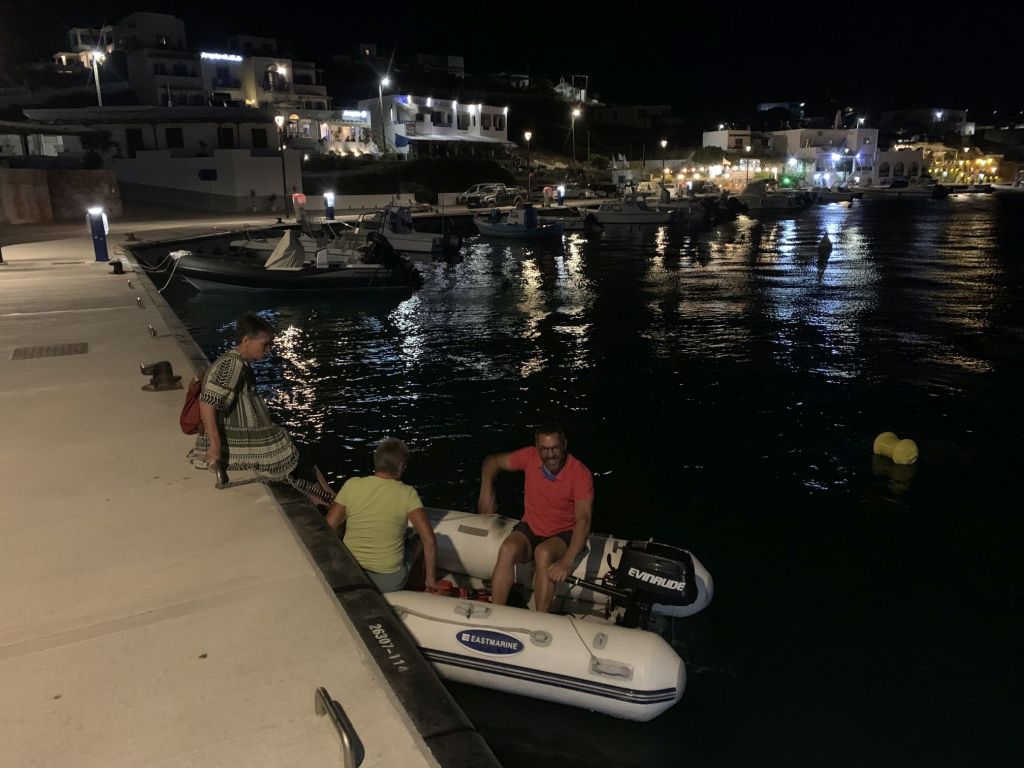 Wir aßen vorzüglich und hatten einen geselligen Abend, der bei einem spontanen Ouzo an Bord der JASPER ausklang. Sibylle und ich hatten es ja nicht weit heim – geschätzte drei Meter – aber wir sind ins Bett gefallen wie gefällte Bäume. Ein schöner Tag!