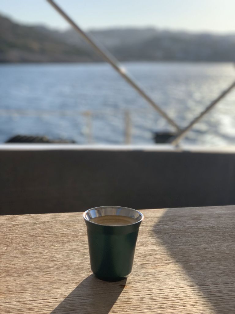 Der begann mit einem Kaffee und einem kleinen Frühstück an Bord der ELOWYN. Es mussten noch die, bei der Hafenpolizei hinterlegten, Papiere geholt werden, dann konnte die Crew die Leinen loswerfen – der erste Weg führte aber nur an den Stadtkai von Lakki…