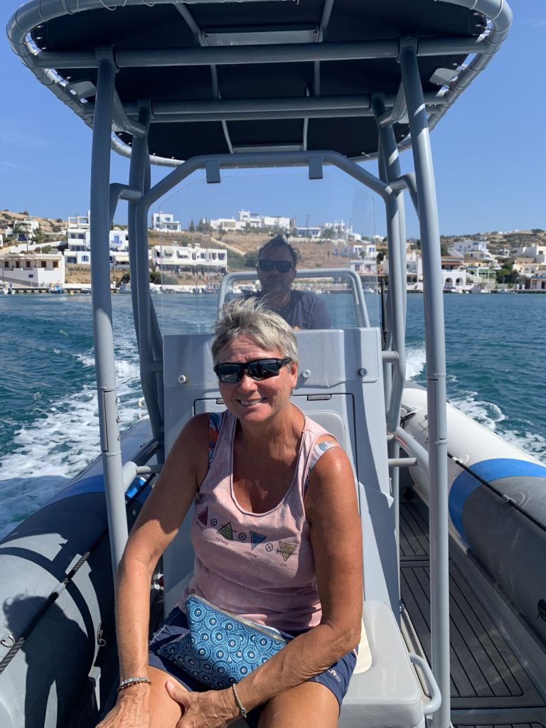 Wir zaudern etwas, denn mit dem Ersatztender der ELOWYN, der Williams ist ja noch bei Giorgos zur Reparatur, müssen wir zweimal im Krabbeltempo in den Ort fahren.