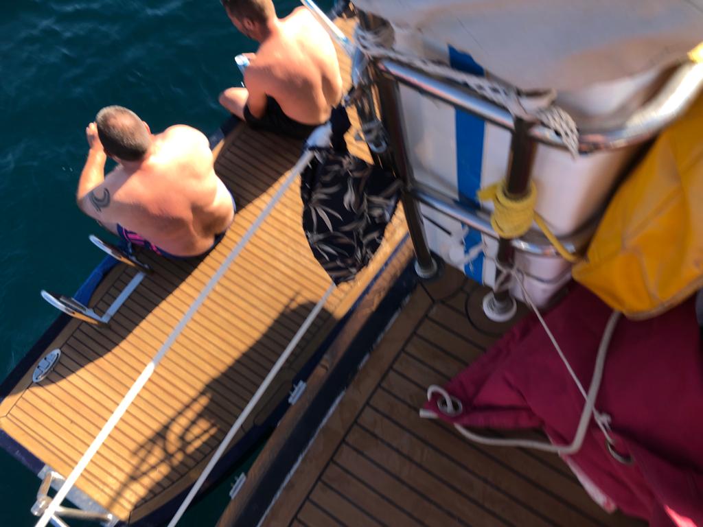 Ich erhalte eine Lehre – kein Bier vor vier! Das hat seinen Grund! Ich gehe nach dem Bierchen auf´s Schiff um etwas zu pausieren – in der Mittagshitze ist es nicht so nice zu schuften. Später wollen wir noch die Fock herunternehmen…
