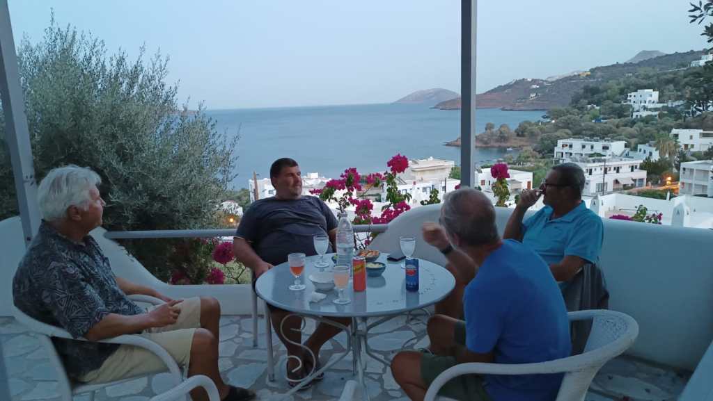 Wir haben uns über Gott und die Welt unterhalten – Segeln, Häuser auf Leros, Urlaube mit dem Motorrad – ich habe von unseren Erfahrungen und Erlebnissen berichtet, die anderen von den Ihren. Es war ein spannender und kurzweiliger Austausch – der Abend verging wie im Flug!