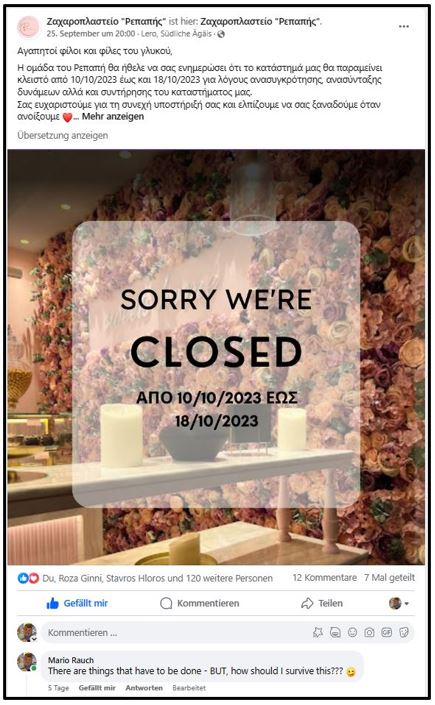 Nur soviel, diese Option hat unserer momentanen Situation als Liveaboards in der Leros Marina Evros neuen Sinn und Antrieb gegeben – wir haben eine gute Basis für zukunftsorientiertes und besonnenes Handeln geschaffen. Alles kann, nix muss…