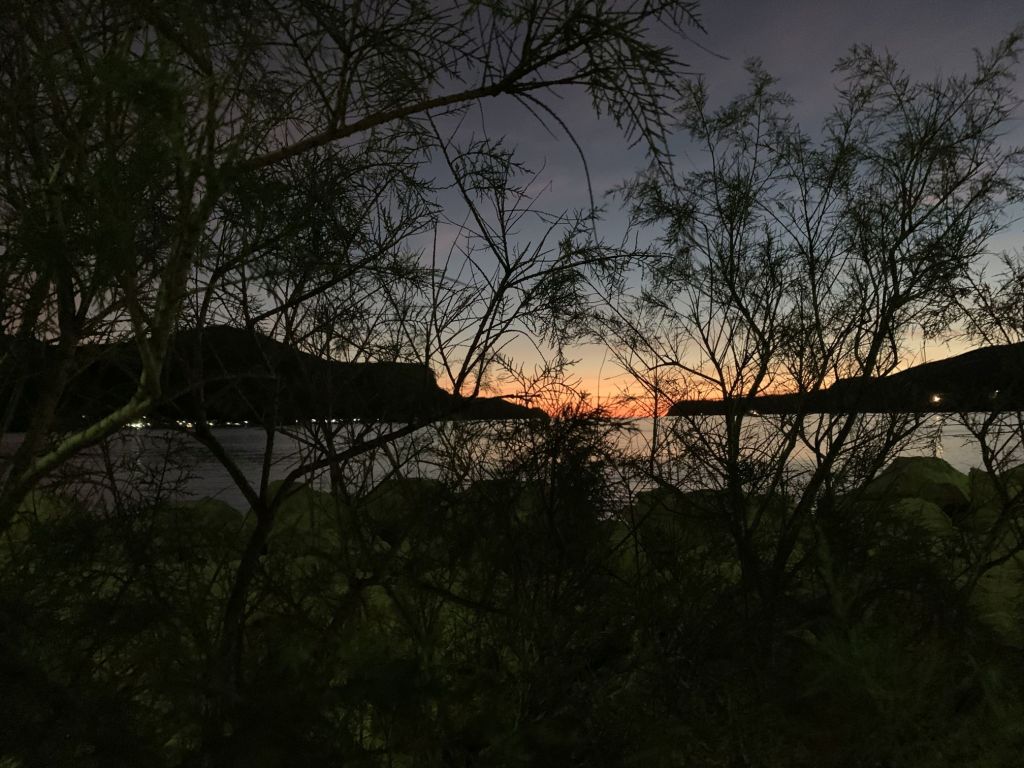 Auch dieser Sundowner verdient seinen Namen, abermals mache ich ein Bild von der Lakki Bucht. Wie immer ohne Filter oder Nachbearbeitung – im Winter sind die Sonnenuntergänge sehr schön anzusehen.