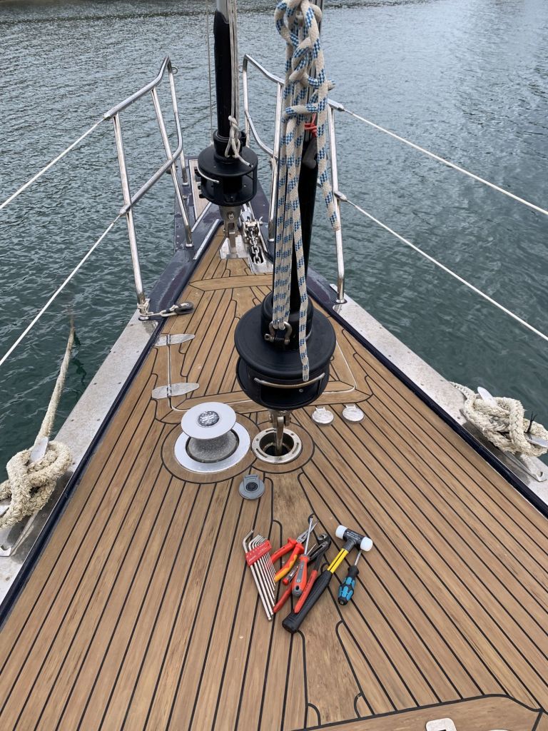 Neuer Tag, wieder widme ich mich der ELOWYN. Ich konnte mir „schweres Gerät“ ausleihen und rücke dem widerspenstigen Spill der Muringwinsch mit Feuer und einem Zughammer auf die Pelle.