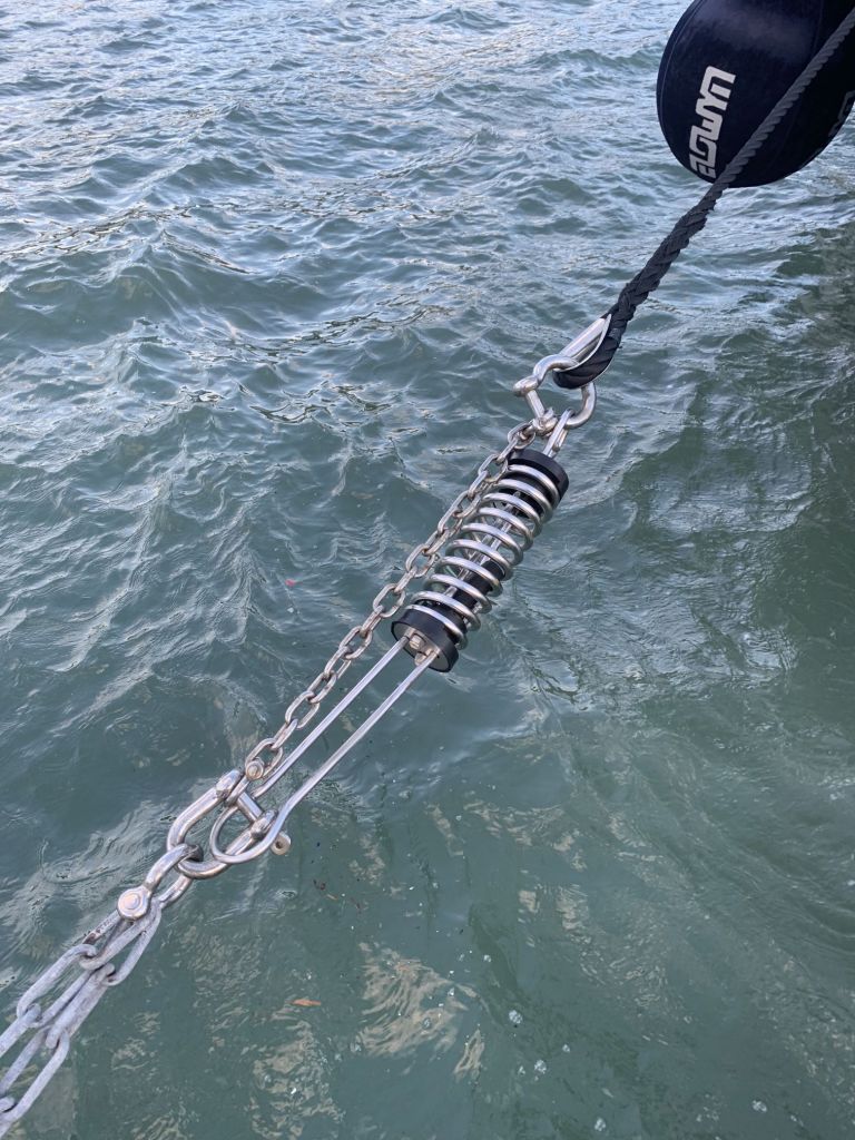 Ich sehe noch nach Werner´s ALENA und lege zwei Springleinen, mein letzter Blick gilt Hans-Peter´s LIBERTÉ – passt alles!