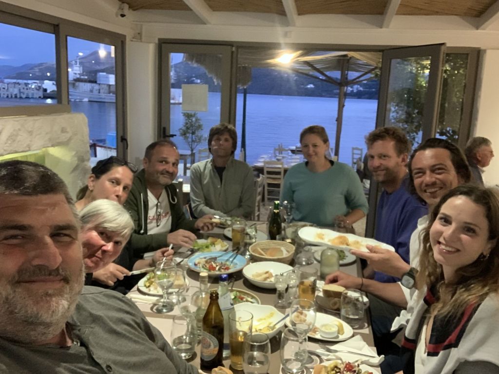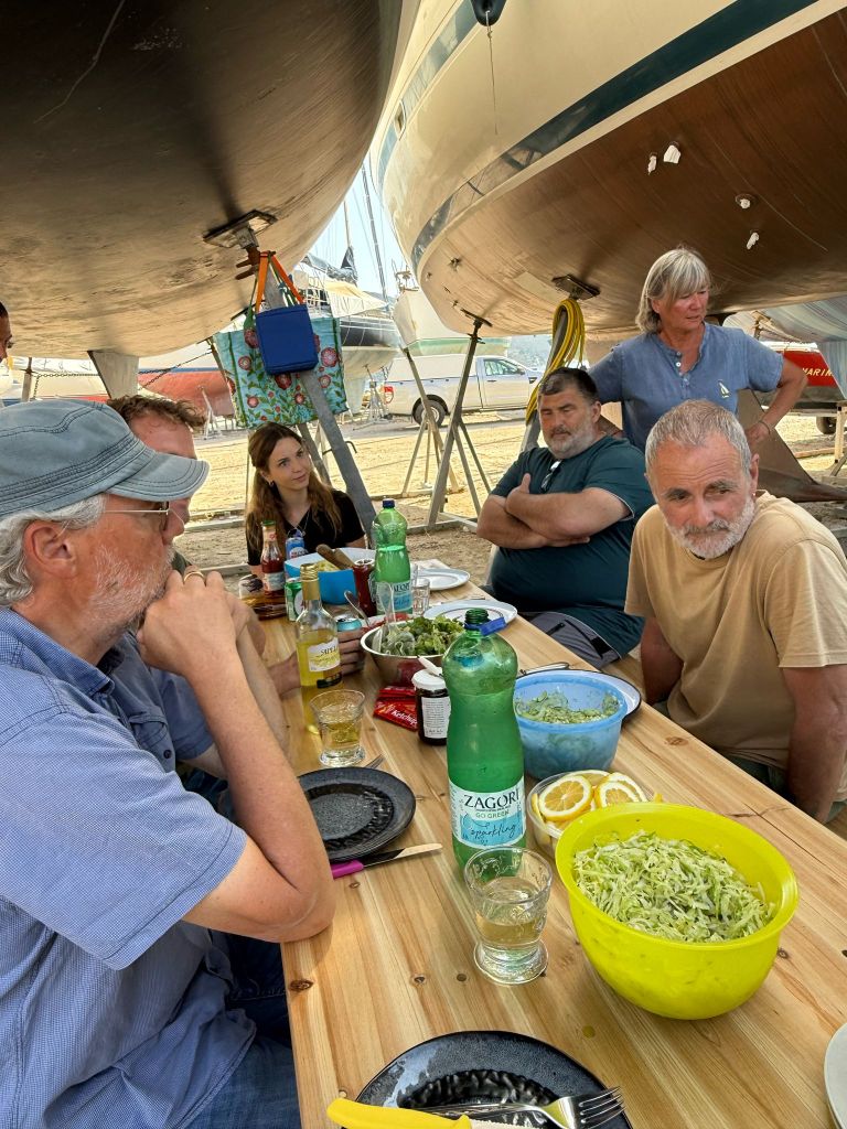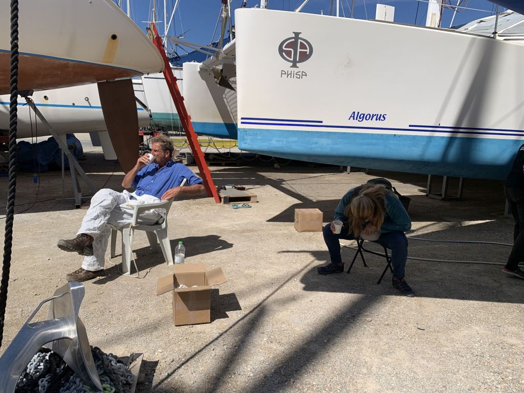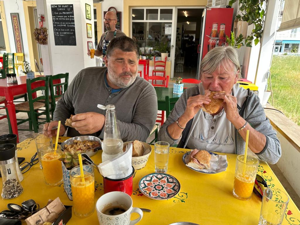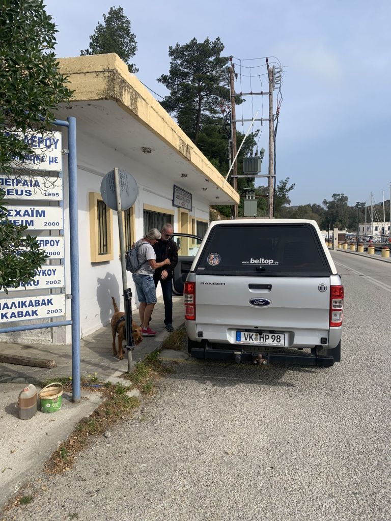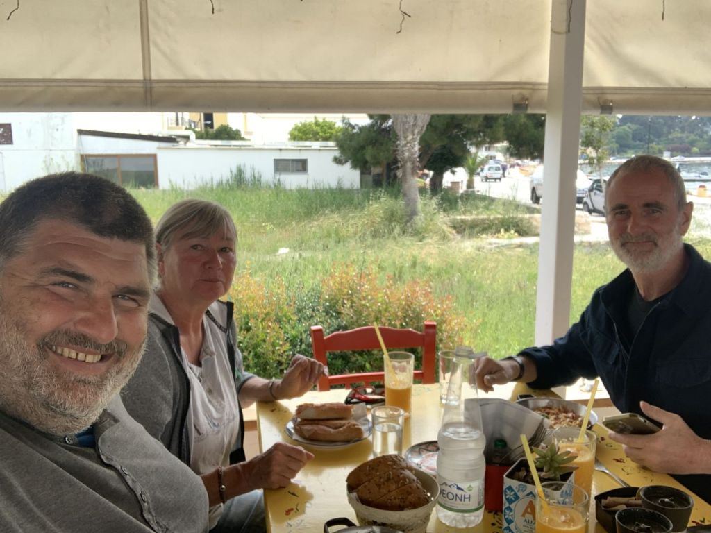 Wir haben die Zeit, ein wenig mit Katerina und Giorgos zu plauschen, wir trinken einen Kaffee zusammen, dann fahren wir zurück in die Marina.