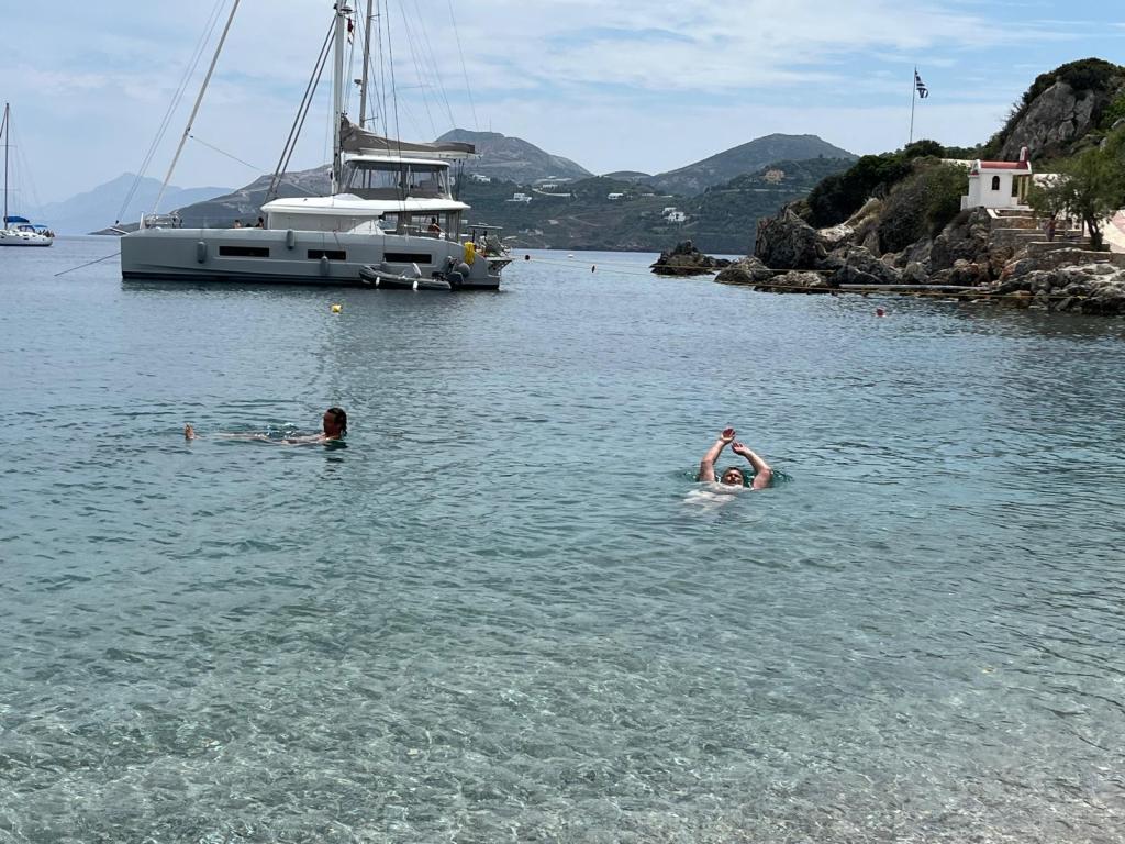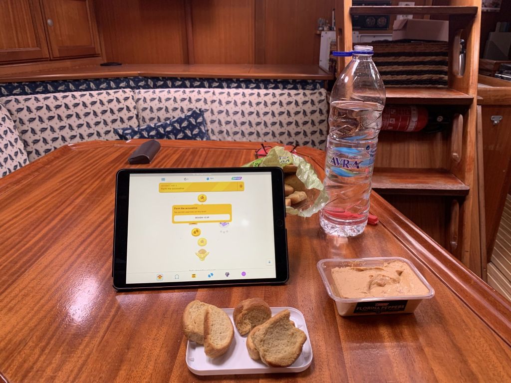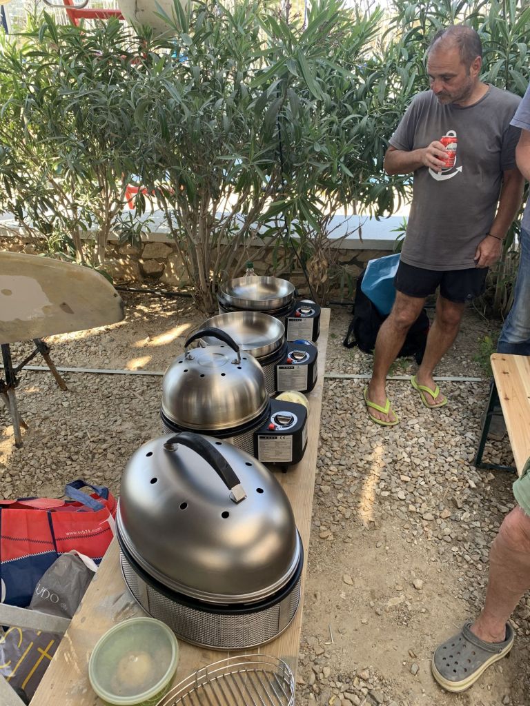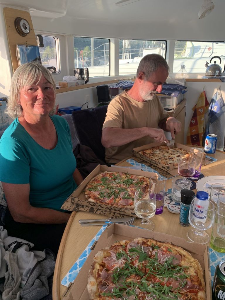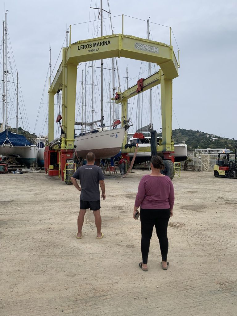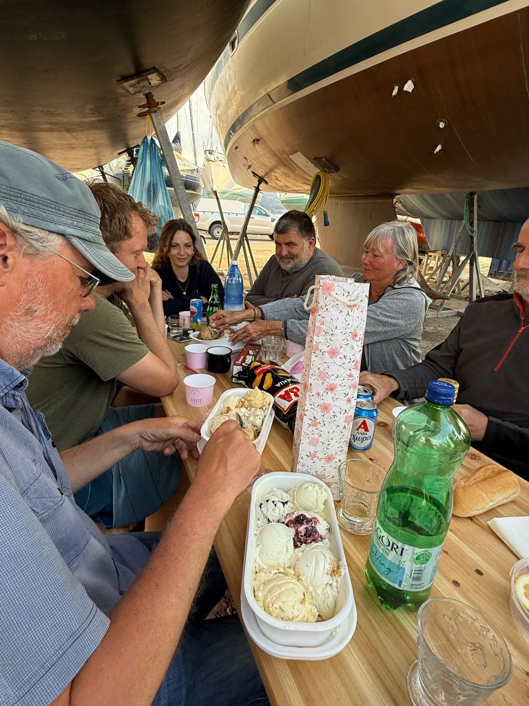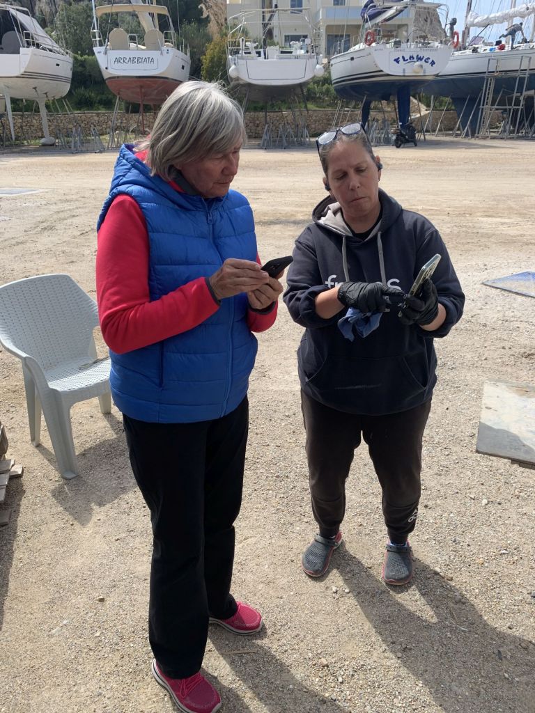 Wir haben die Zeit, ein wenig mit Katerina und Giorgos zu plauschen, wir trinken einen Kaffee zusammen, dann fahren wir zurück in die Marina.