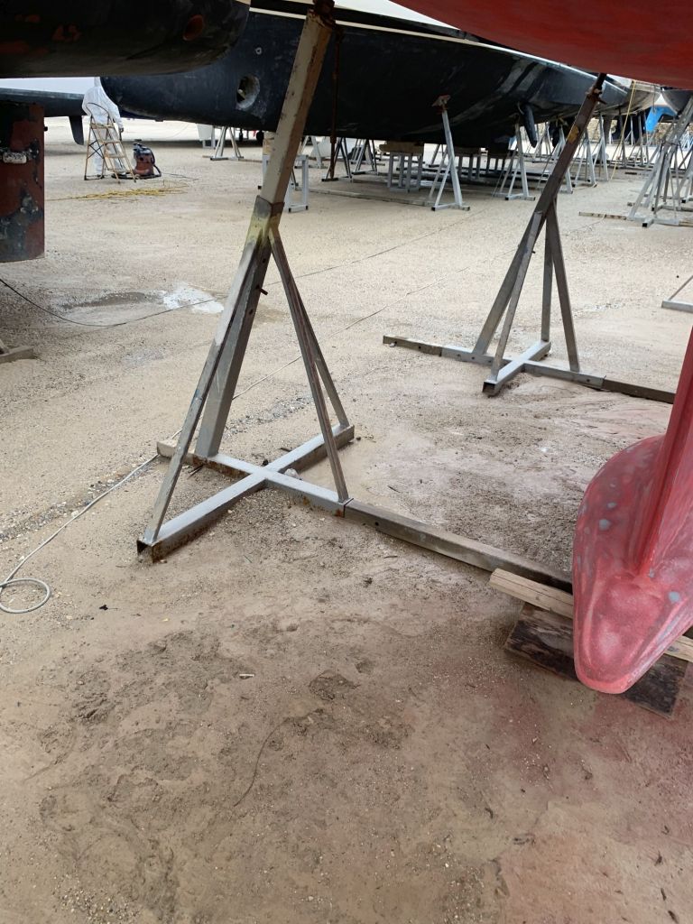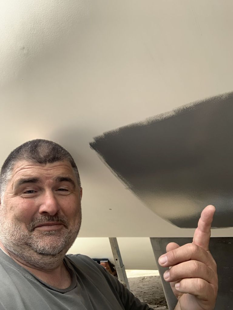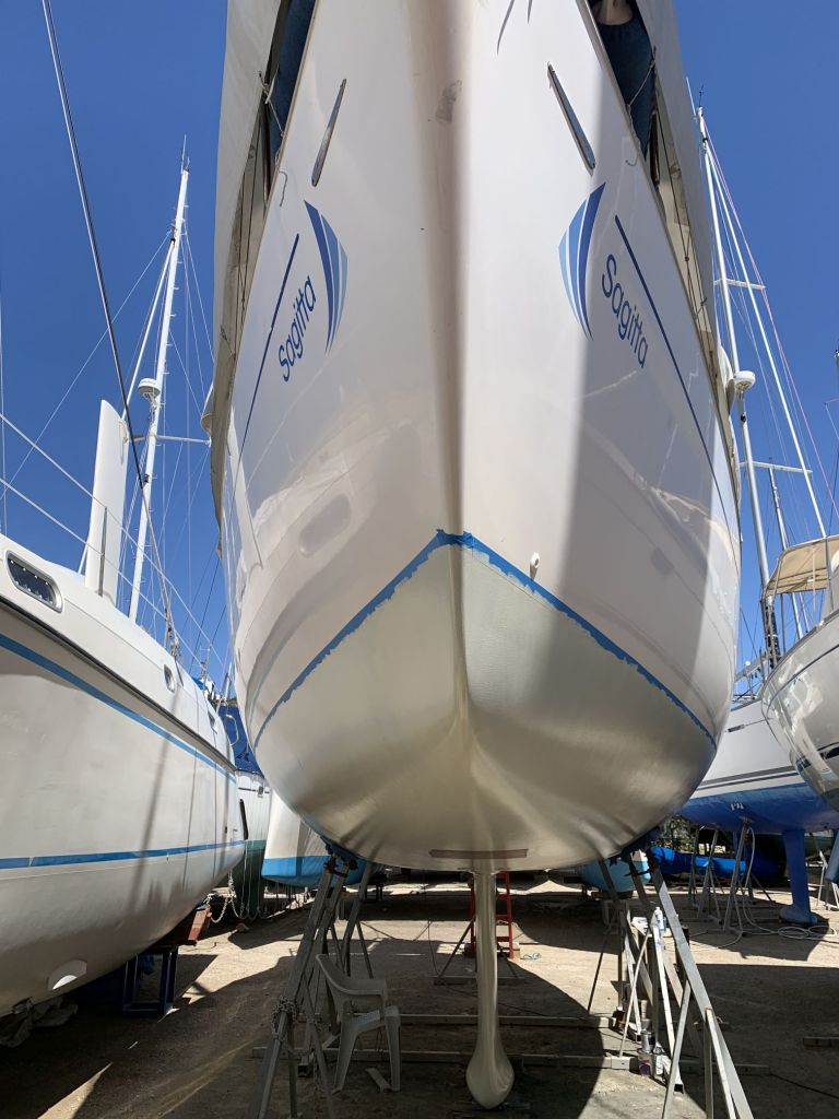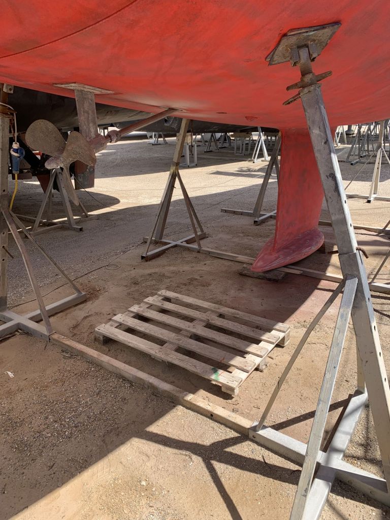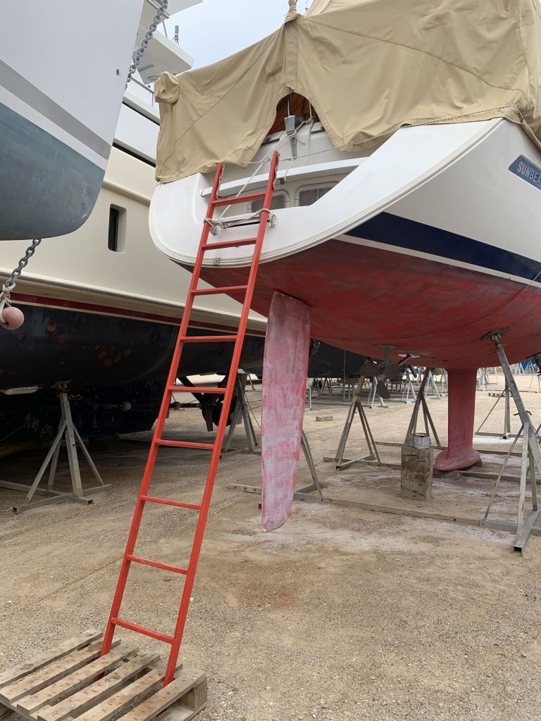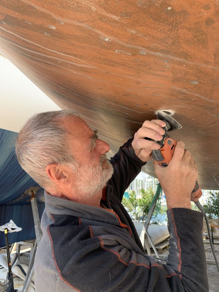 Das Schiff hat nach dem Schleifen fast hellbraun / hellrosa ausgesehen. So hat es auch ein Katamaran gemacht, welcher neben uns stand.