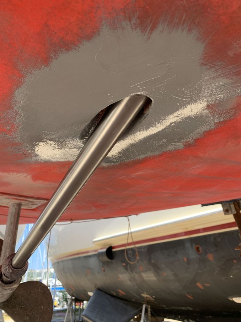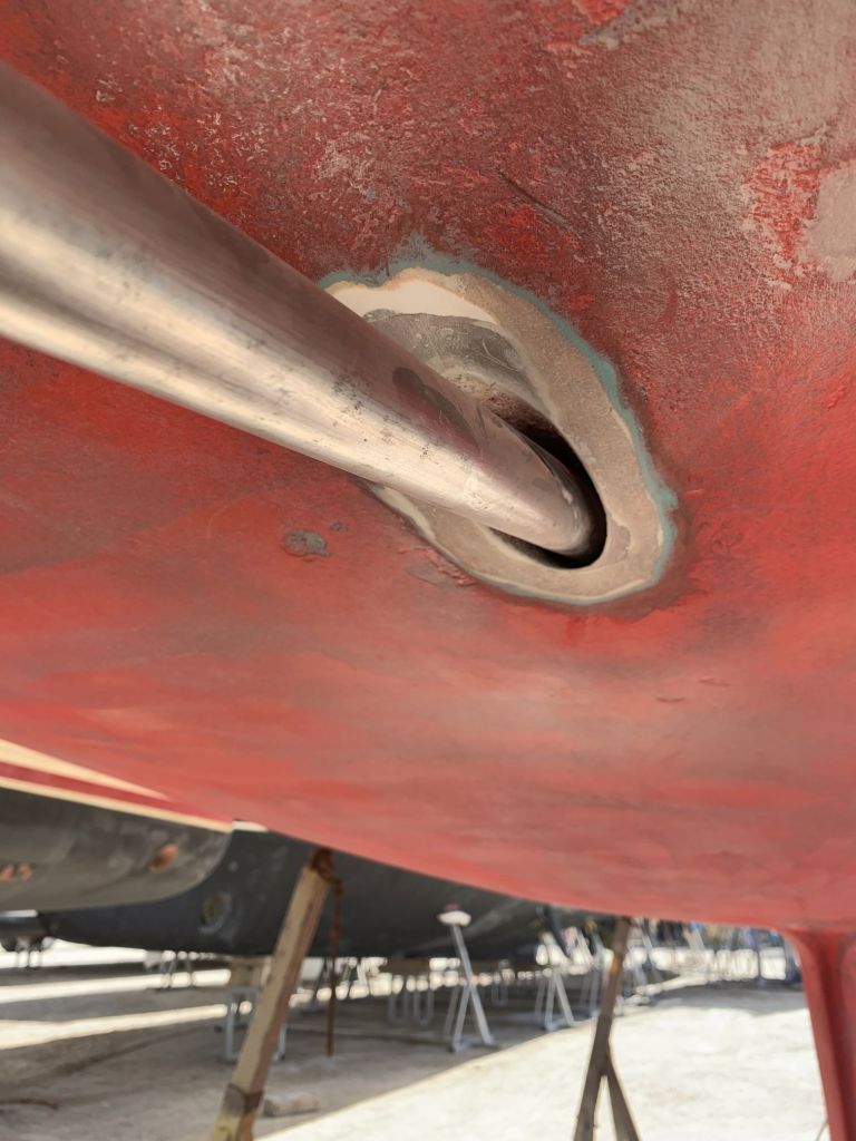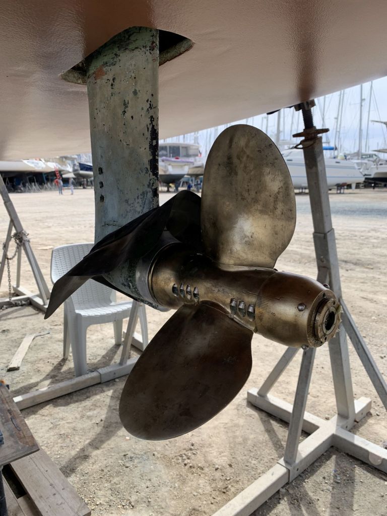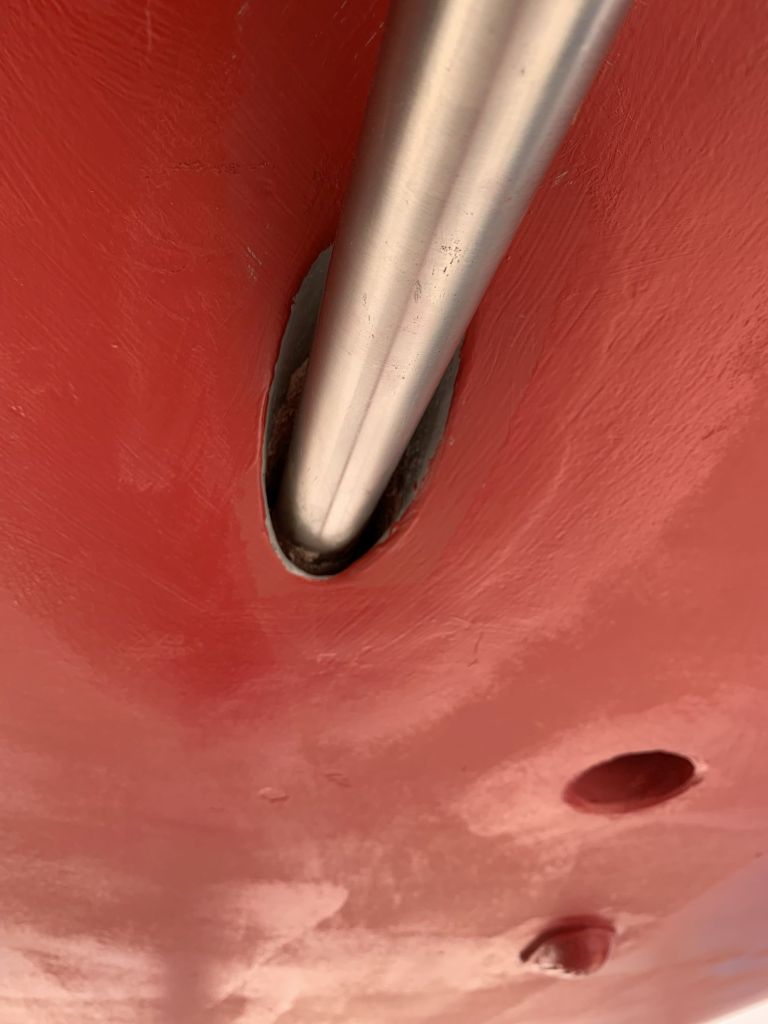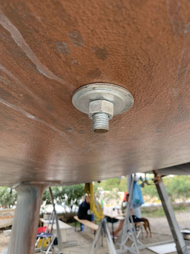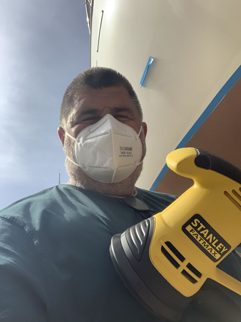 Das Schiff hat nach dem Schleifen fast hellbraun / hellrosa ausgesehen. So hat es auch ein Katamaran gemacht, welcher neben uns stand.