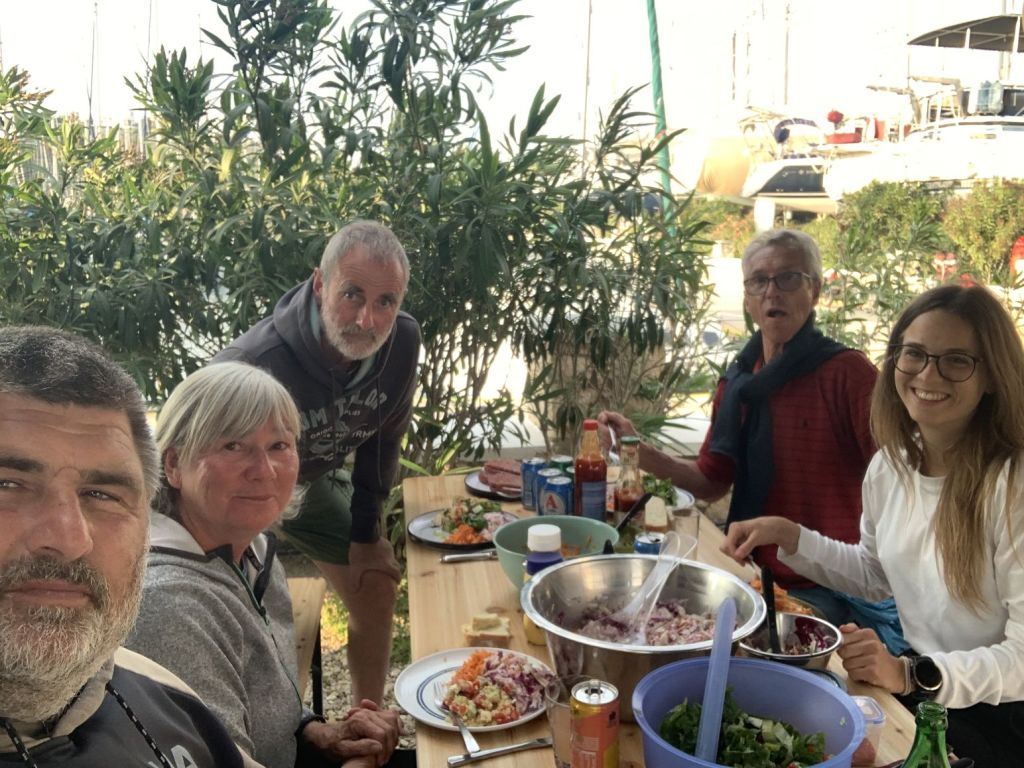 Wir sind eine illustere Runde, denn wir, das heißt Sibylle, Eva, Mario und ich, werden von Brigitte und Hans von der BARCASO begleitet – eine österreichisch-bayrische Runde!