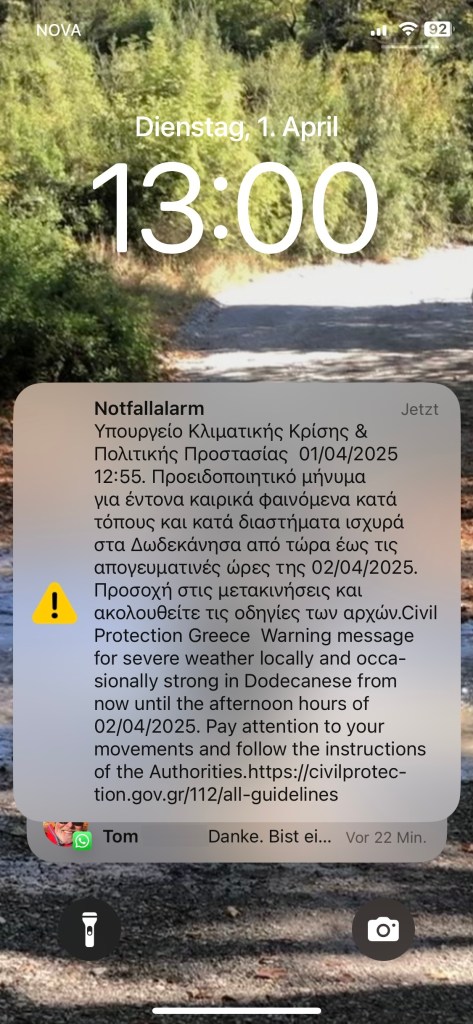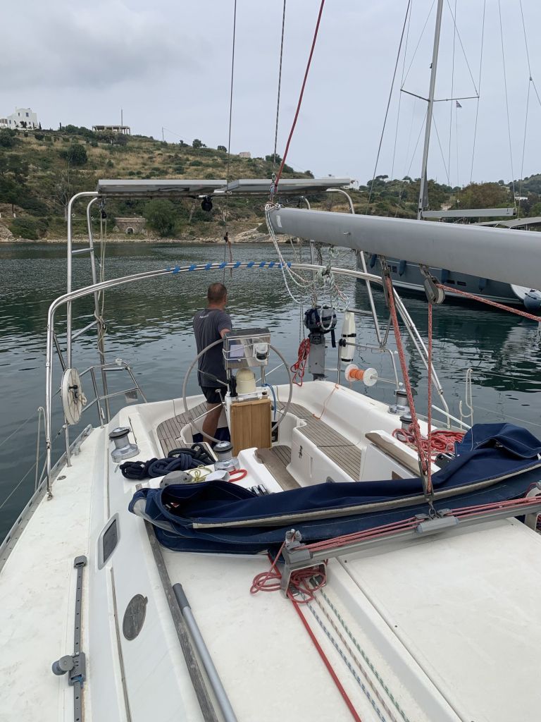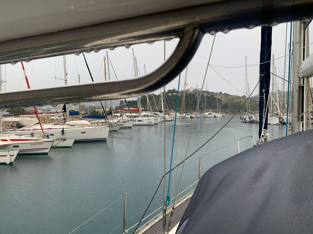 Als ich in die Marina zurückkomme, bin ich noch in Gedanken – das war ja jetzt wieder so typisch inselgriechisch. Ich sinniere noch, da holt mich die Realität ein.