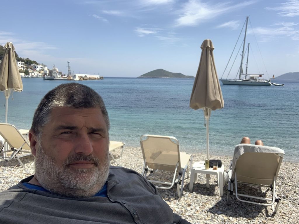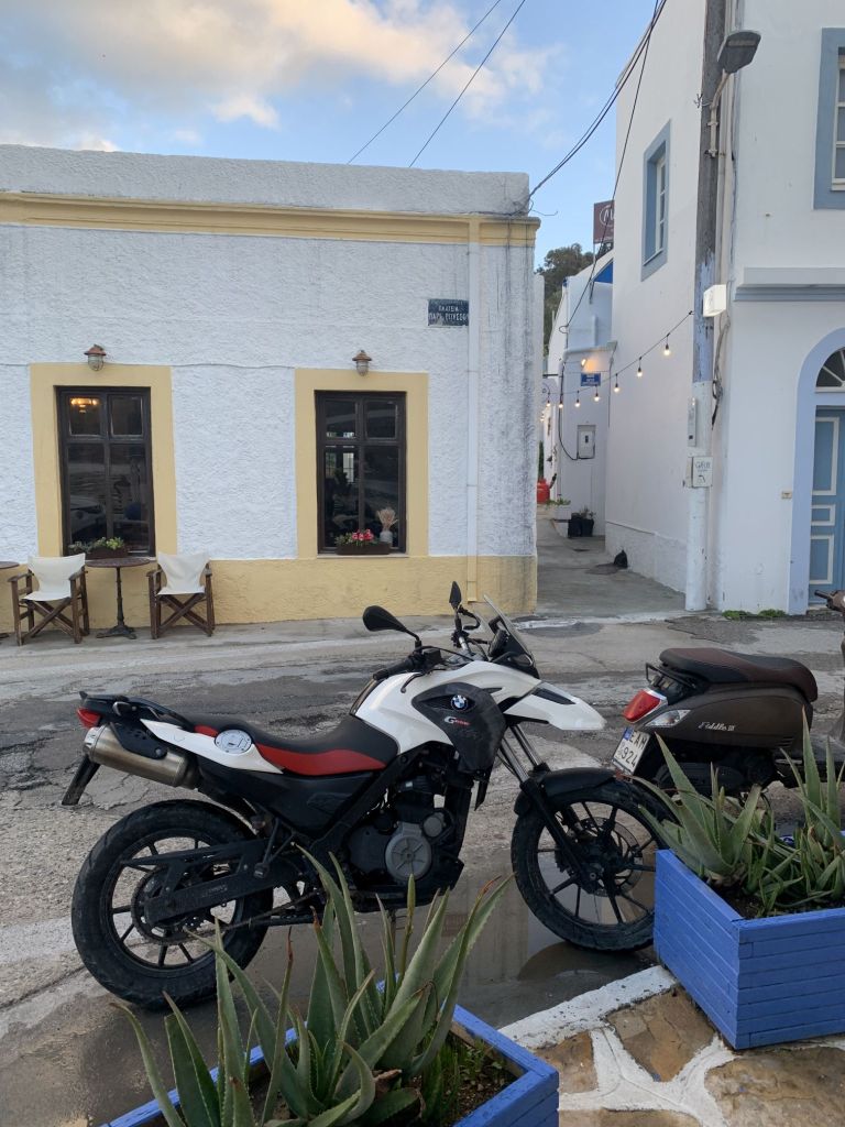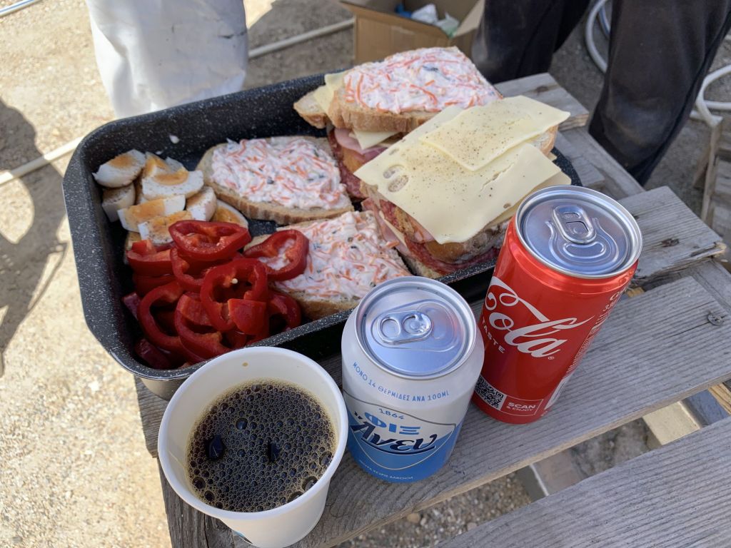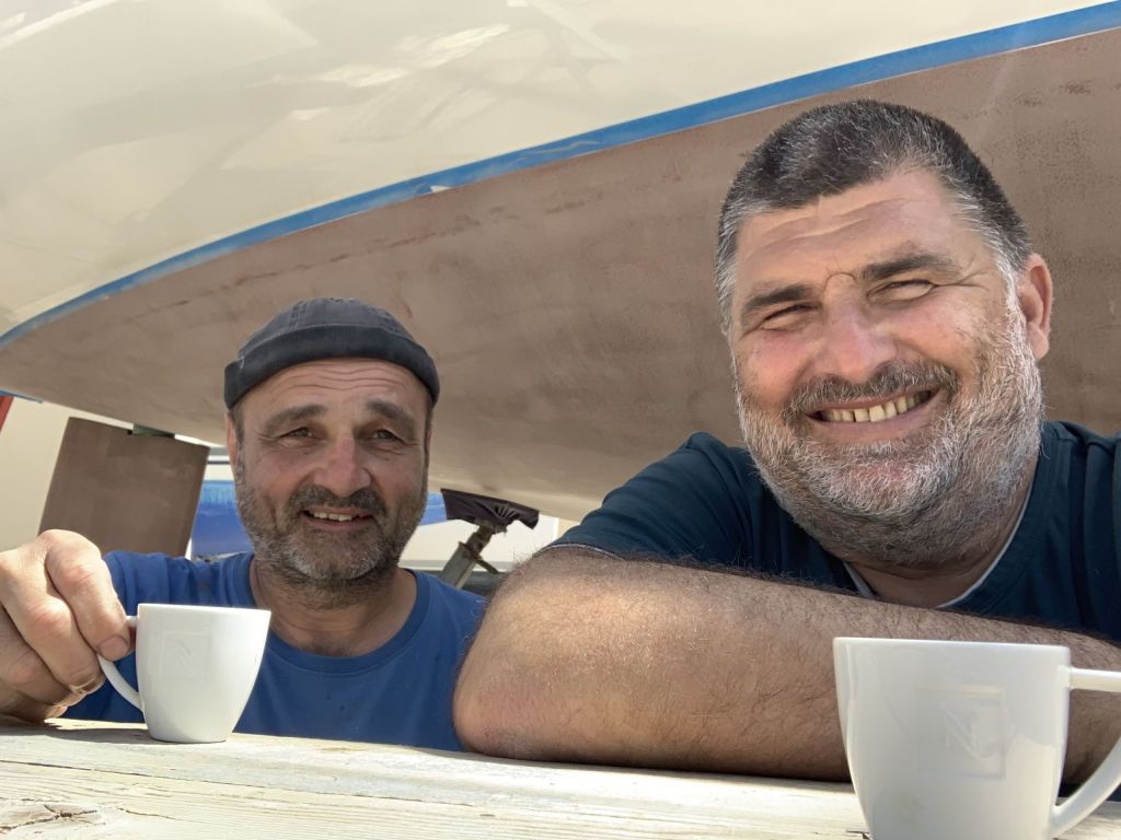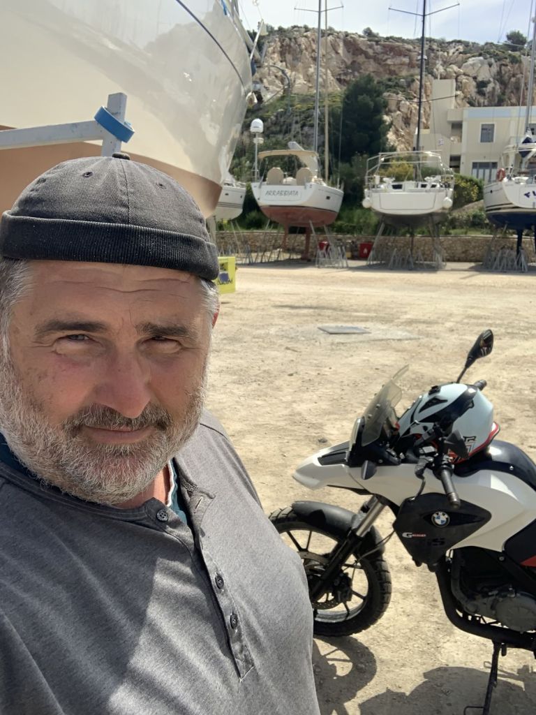 Am Weg kommen wir direkt bei Giorgos vorbei. Ich habe eine ganze Liste an Kleinarbeiten mit ihm zu besprechen – keine einzige ist für mich!
