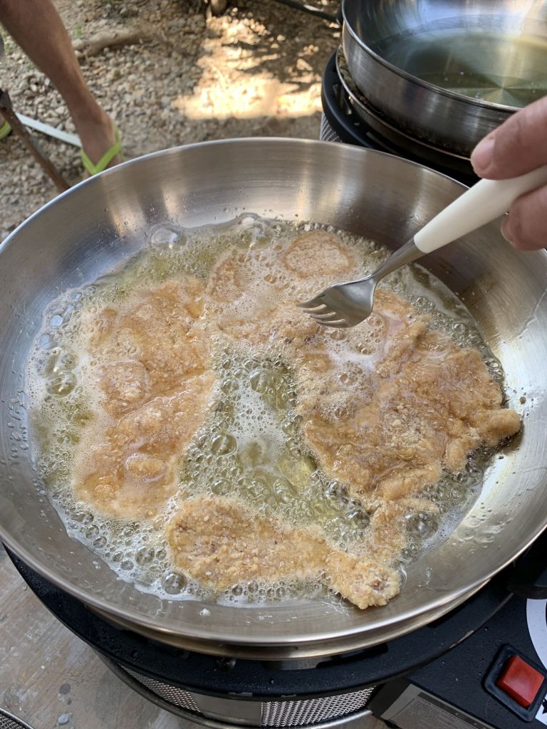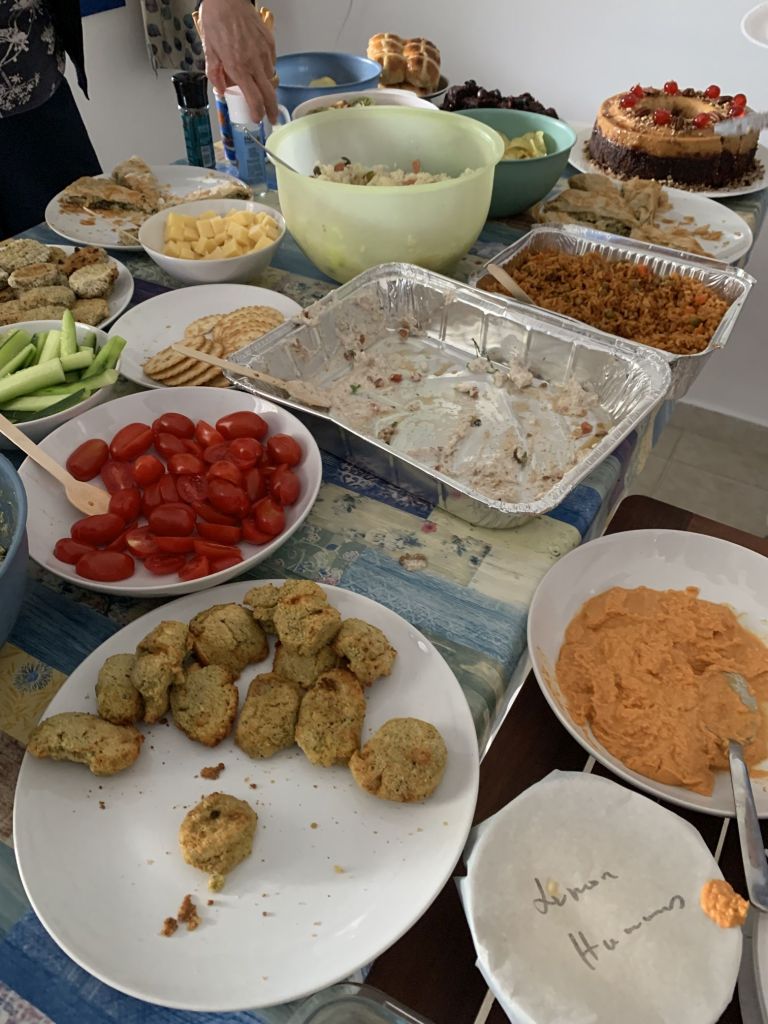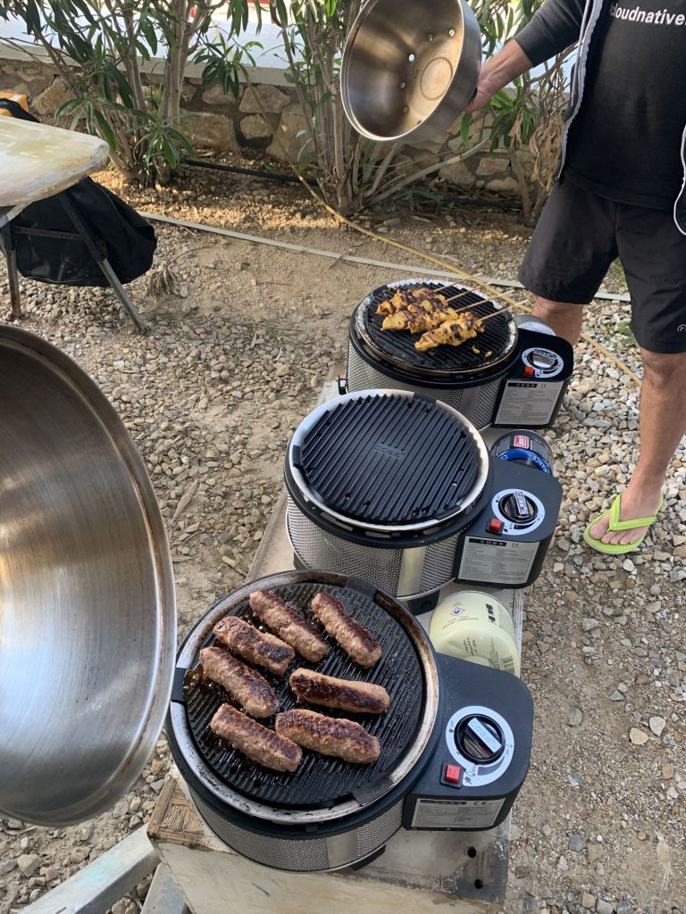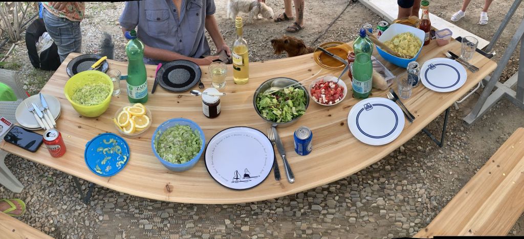 Viele Salate, Burgerpattys und Brot sollen die Tafel bereichern, wir freuen uns darauf – und es klappt so wie wir uns das vorstellen.