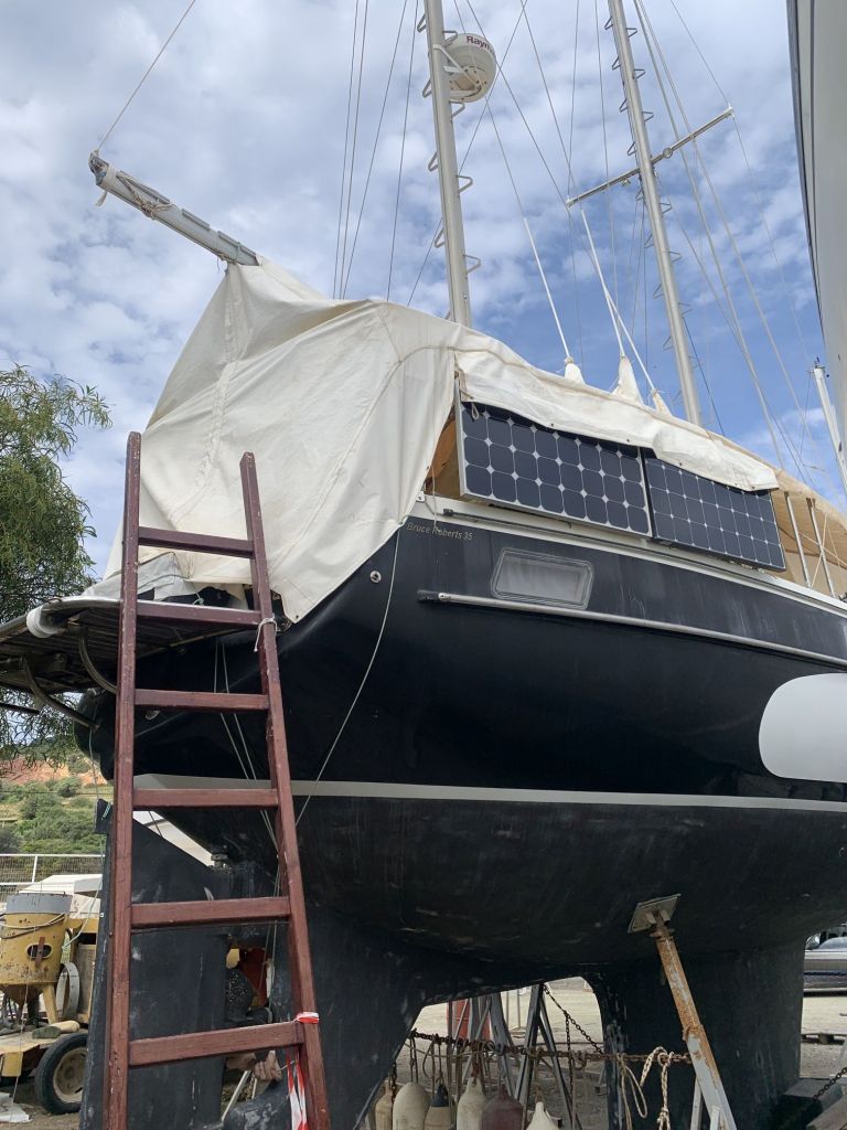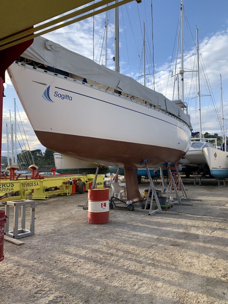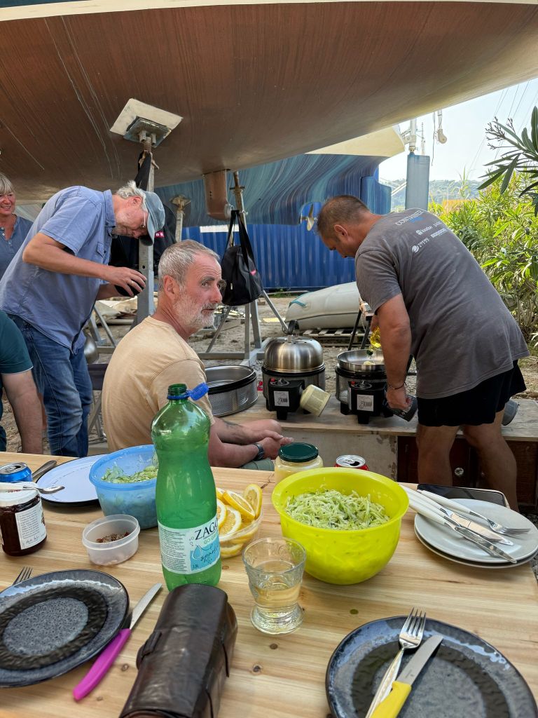 Wir treffen die Beiden recht früh am Tag und holen sie in ihrem Frühstückscafé ab, dann fahren wir zusammen in die „Artemis Boatyard“.