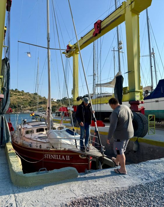 Wir besorgen für Mario ein Auspuffrohr und einen Abgaskrümmer und wir geben den Auftrag für die Davits von Rinaldos AEGEAN BLUE.